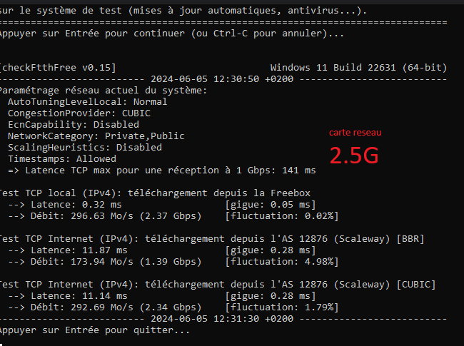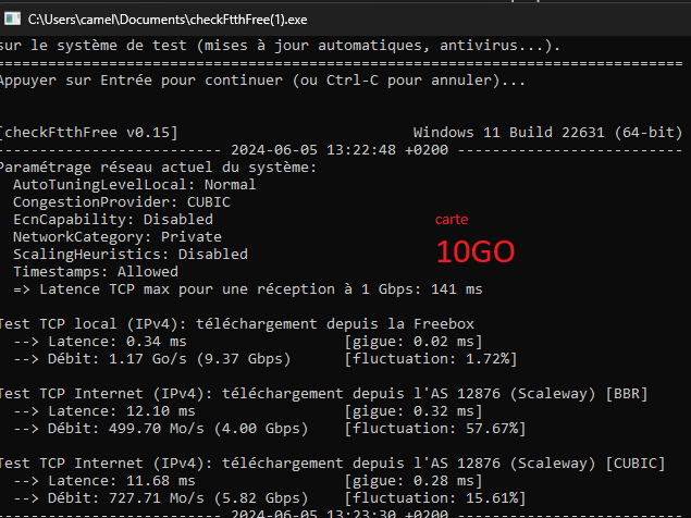 L'outil checkFtthFree réalise des tests mono-connexion pour évaluer la qualité de la ligne. Ces tests sont beaucoup plus exigeants en terme de qualité de connexion, il faut prendre cela en compte pour interpréter les résultats. Quand on a plus de 5 Gbps en mono-connexion Cubic sur une connexion Internet grand-public c'est déjà plutôt pas mal...