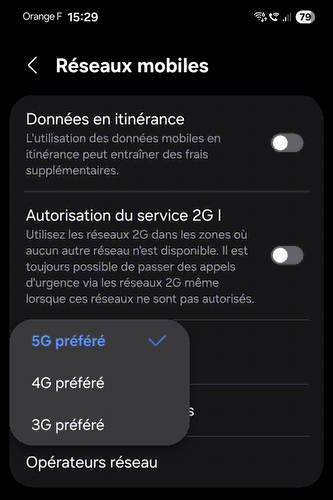Sur iPhone avec Orange, je suis bridé à la sélection 4G/5G. J'en ai fait les frais à Disney lors d'une panne 4G de 24h, mon iPhone bouclait sur la 4G en carafe.