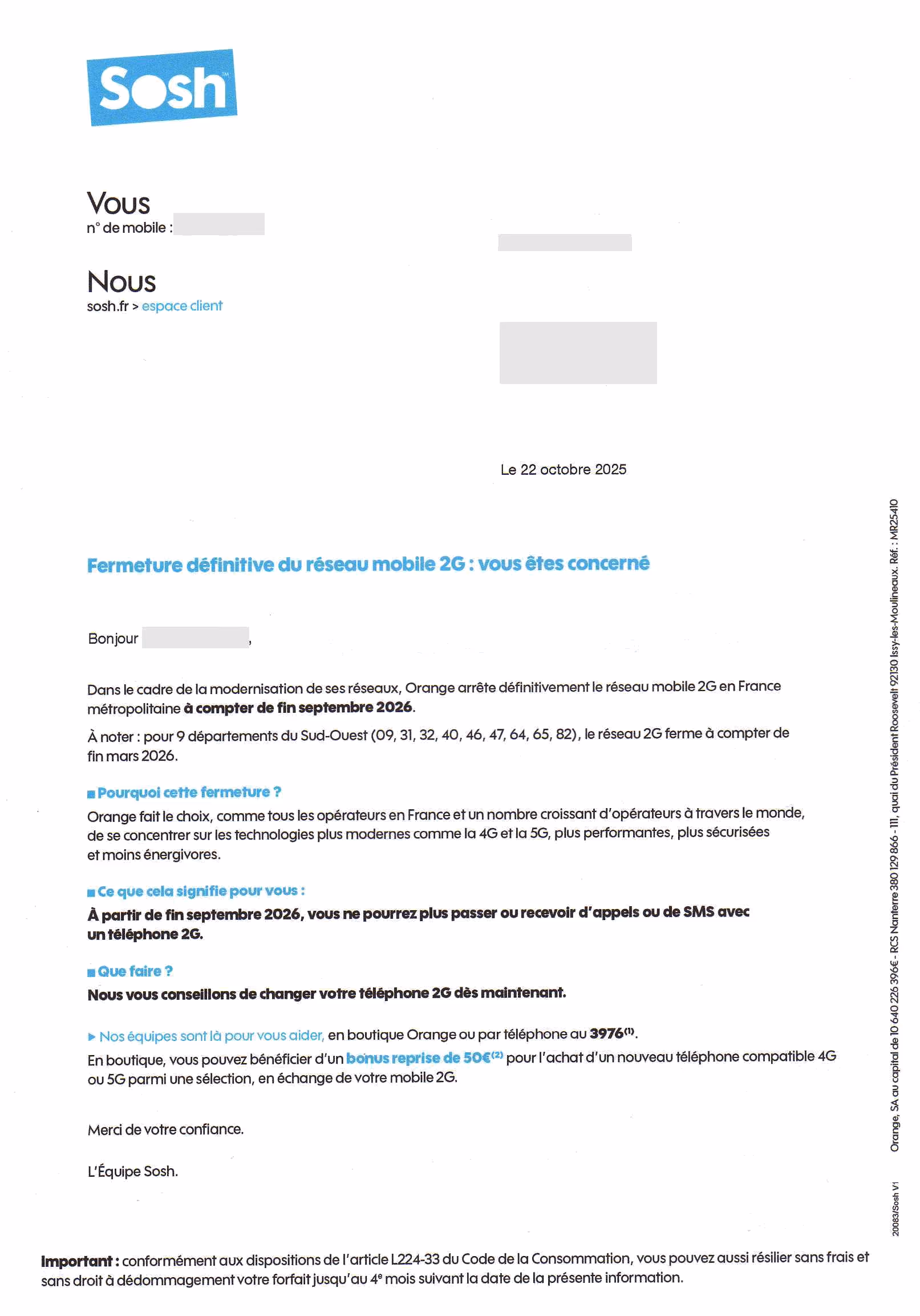 Fermeture du réseau mobile 2G: vous êtes concerné :