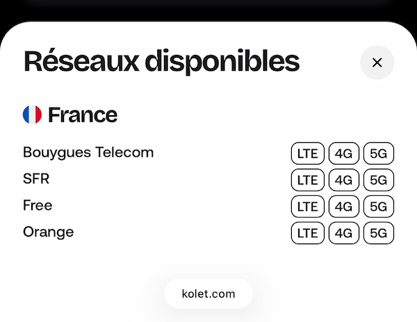 Pour information Léon, il y a aussi la startup française Kolet qui agrège l'ensemble des réseaux français en 5G sur une seule eSIM.