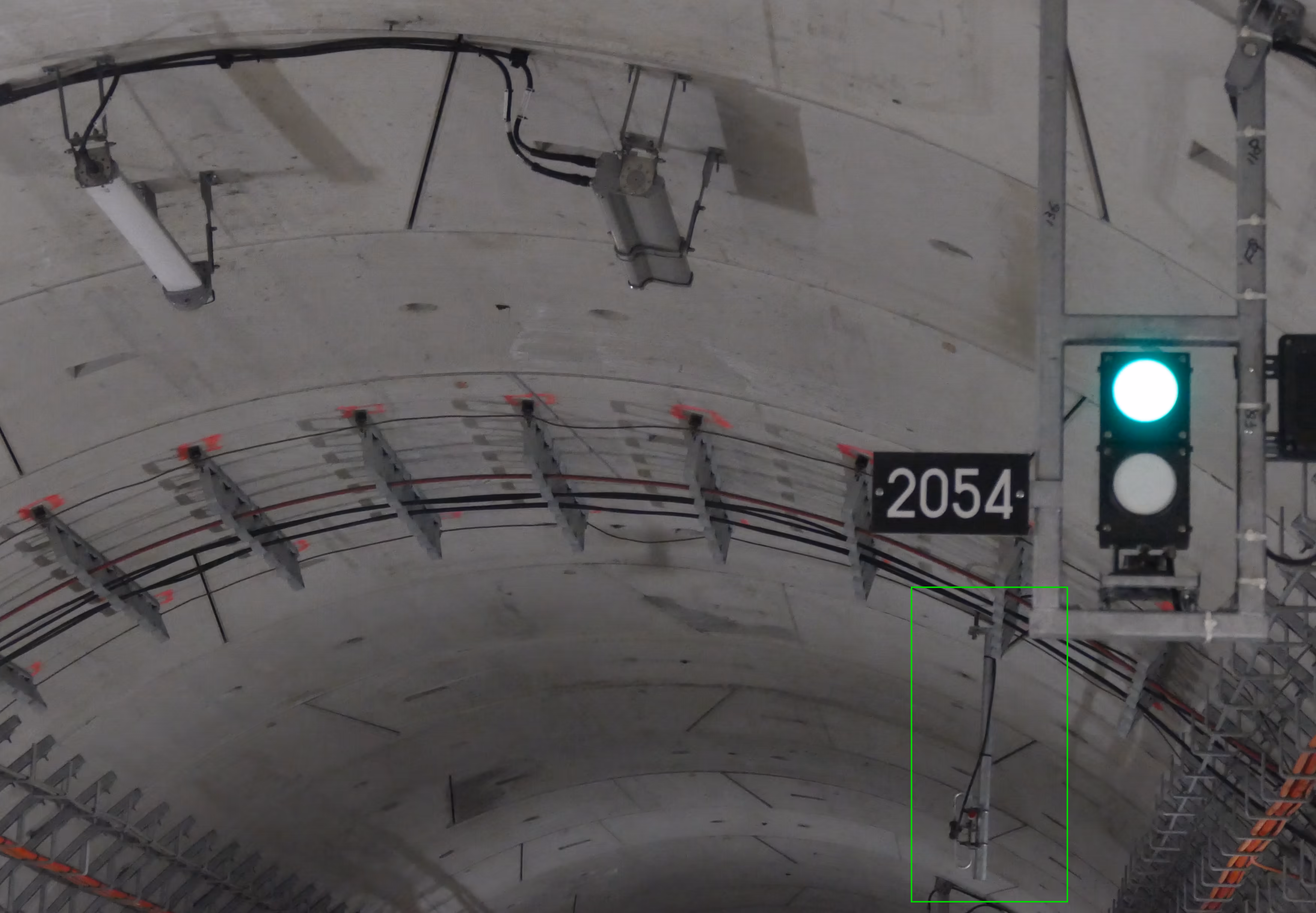 Je me demande si cela ne pourrait pas être un élément lié à l'automatisation, comme cette caméra juste avant un aiguillage (feu rectangulaire = protège une aiguille, on retrouve l'œilleton, comme sur la signalisation SNCF).