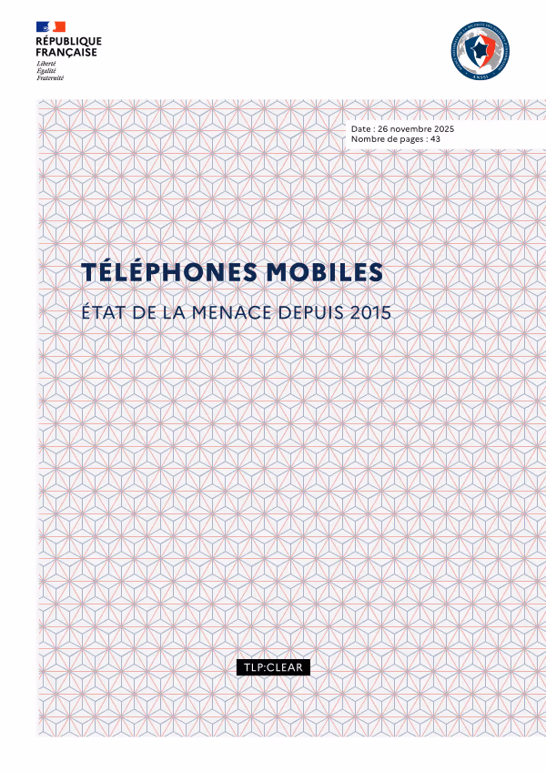 L'ANSSI vient de publier un document qui présent les différents vecteurs techniques exploités par les attaquants pour compromettre des téléphones mobiles, ainsi que dresser une vue d’ensemble sur les menaces pesant sur les utilisateurs en fournissant des exemples concrets d’attaques conduites en France ou à l’étranger. Des recommandations de sécurité à destination des utilisateurs accompagnent cet état de la menace.