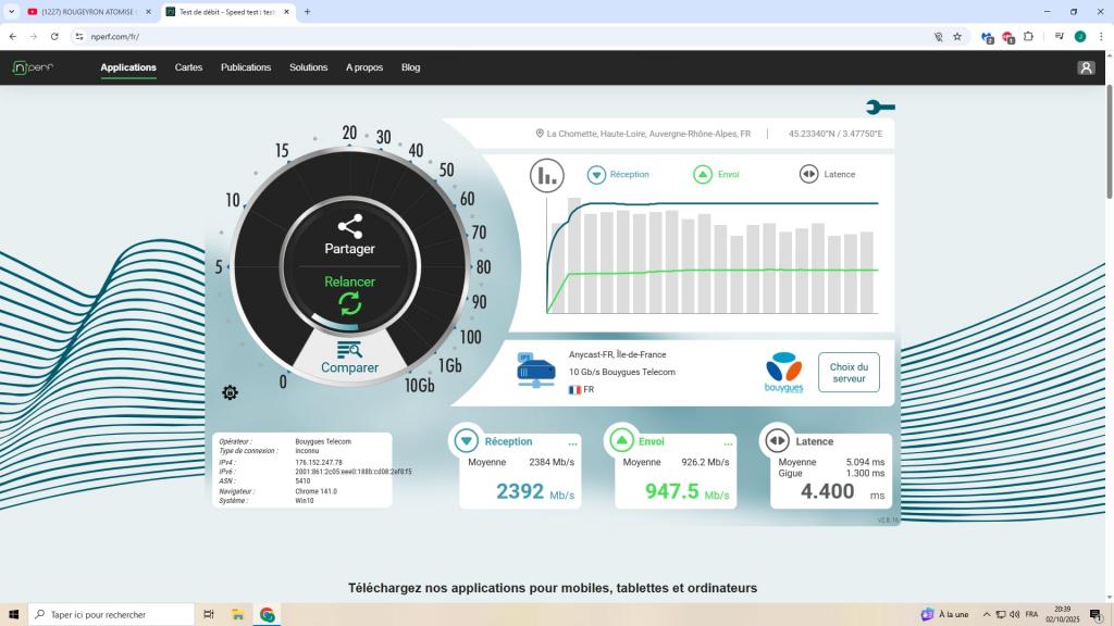Avec mon ancien module gpon 1.3 Mb/s j'ai donc eu un gain très faible