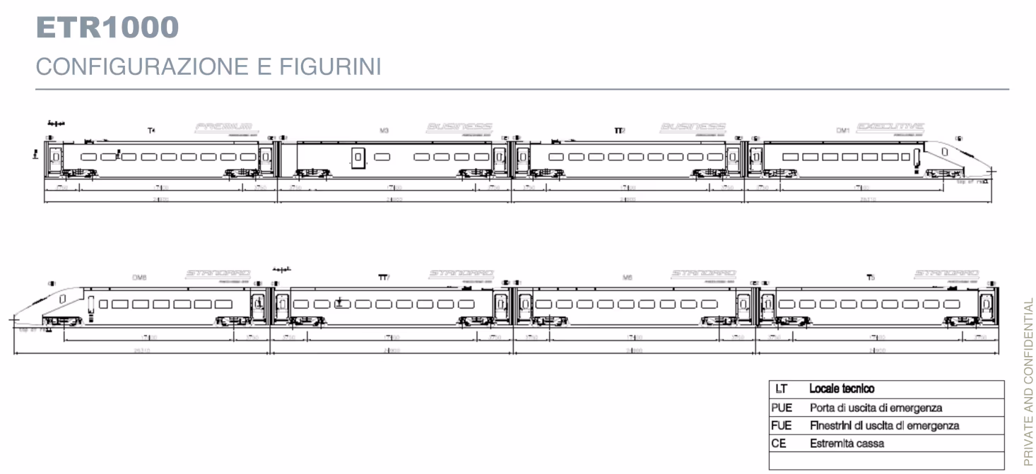 Voici la configuration du Frecciarossa 1000 (ETR 1000) qui a déraillé.