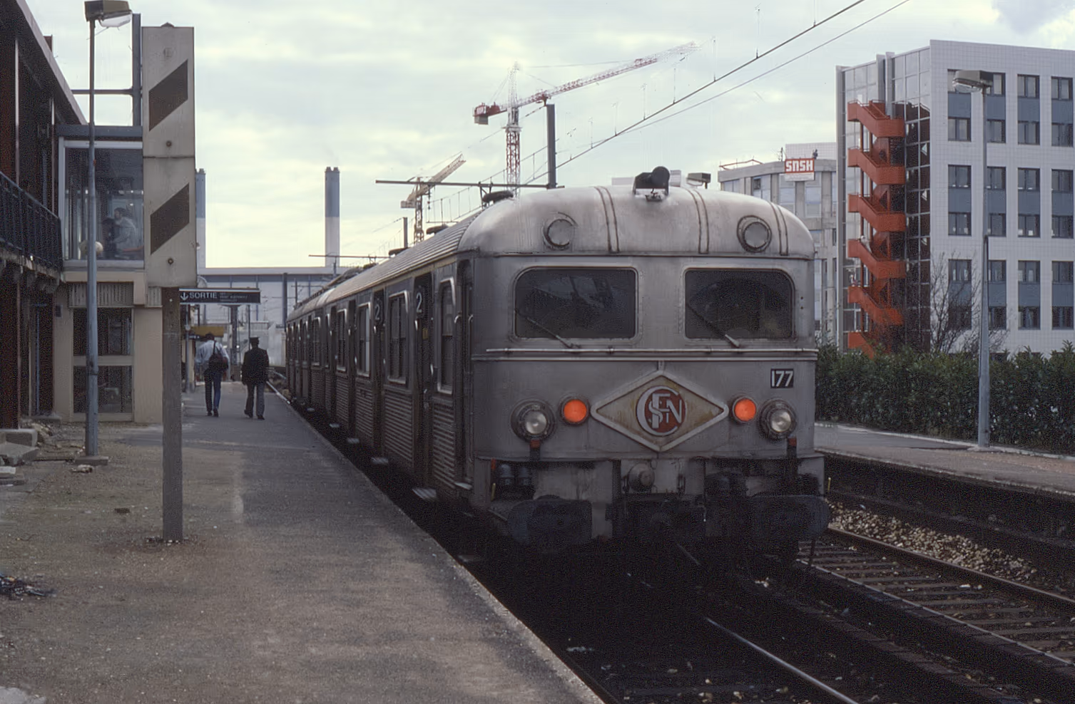 Un élément Z 5100 adapté pour l'alimentation par 3e rail à Issy-Plaine, en avril 1987 :