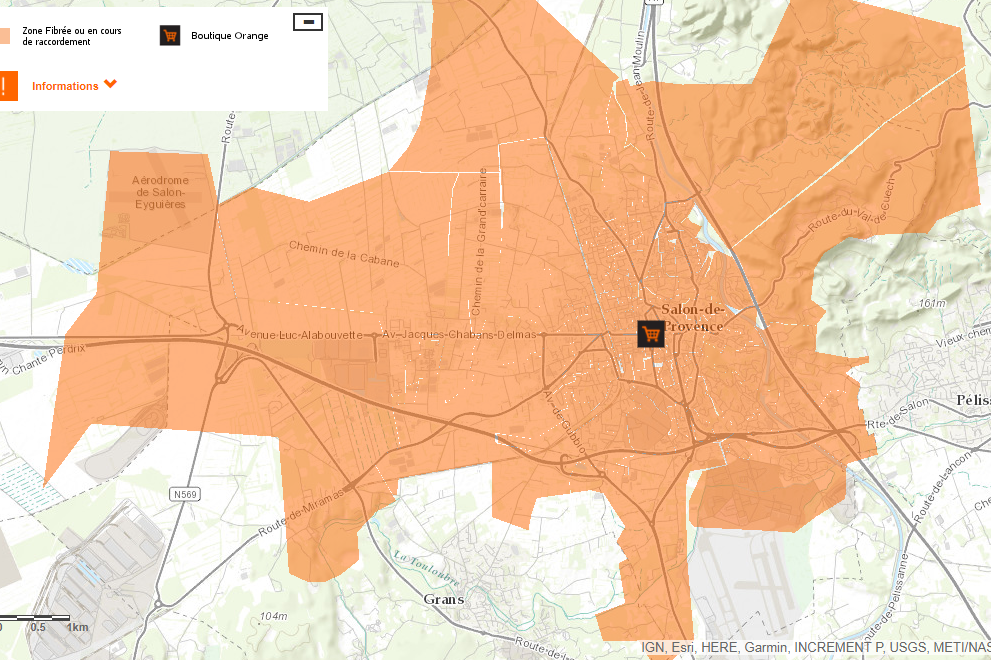 Bonjour, il y à une erreur d'interprétation du zoom, en position - sur la carte de Salon toute la ville est présenté couverte par la fibre, mais si on interroge une adresse en dessous de l'avenue Maréchal Juin  avec un zoom plus élargi là seul un tiers de la ville est couvert par la fibre.