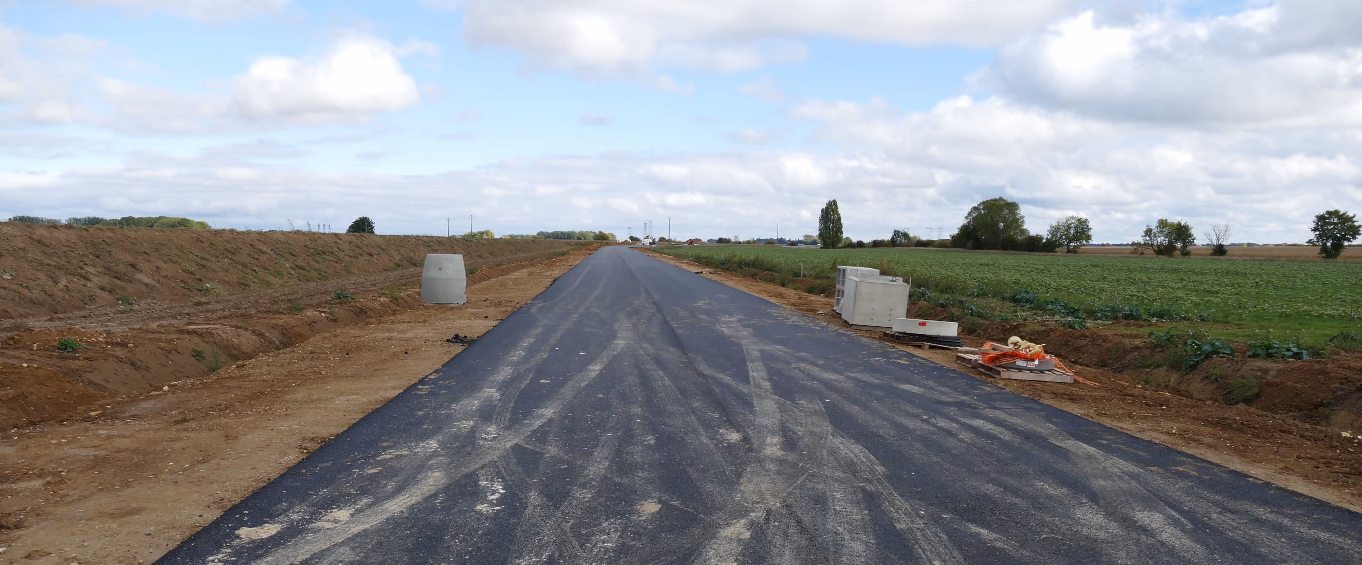 Ci-dessous, je suis au croisement de la route de Moisenay et de la nouvelle route en construction.
