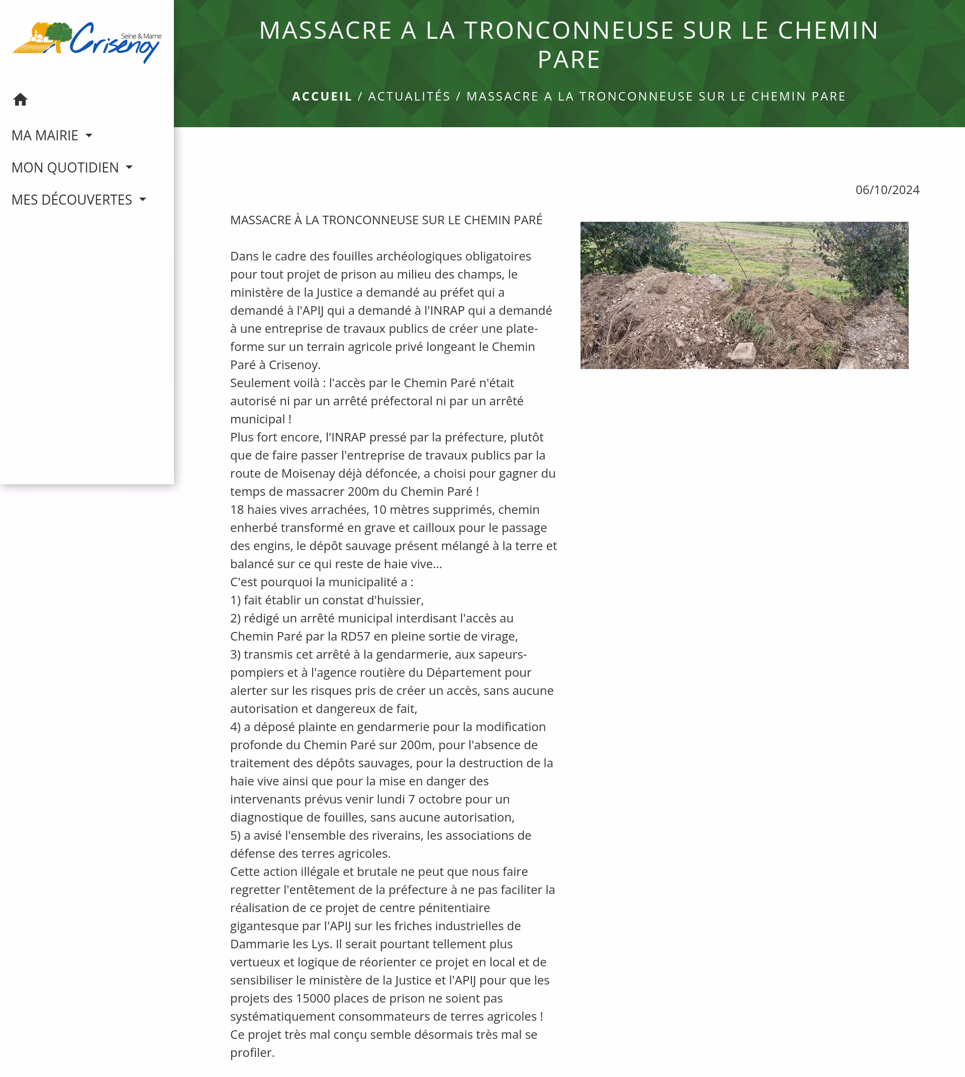 https://www.leparisien.fr/seine-et-marne-77/prison-de-crisenoy-le-maire-depose-plainte-contre-letat-qui-defigure-une-voie-communale-07-10-2024-HNM72J7KHRHQROZRKJNHVQRWXY.php