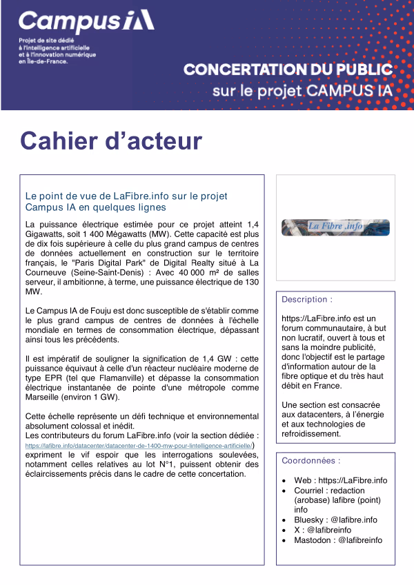 Oui, mais on sait qu'il n'est pas possible d'évacuer 1.4 GW (ou même 700 MW, première phase), dans ces conditions, n'est-ce pas ? Vivien a relevé que cela ne concernait que les 3 premiers datacenters, certainement d'une puissance moindre, même si elle n'est pas précisée, malheureusement.
