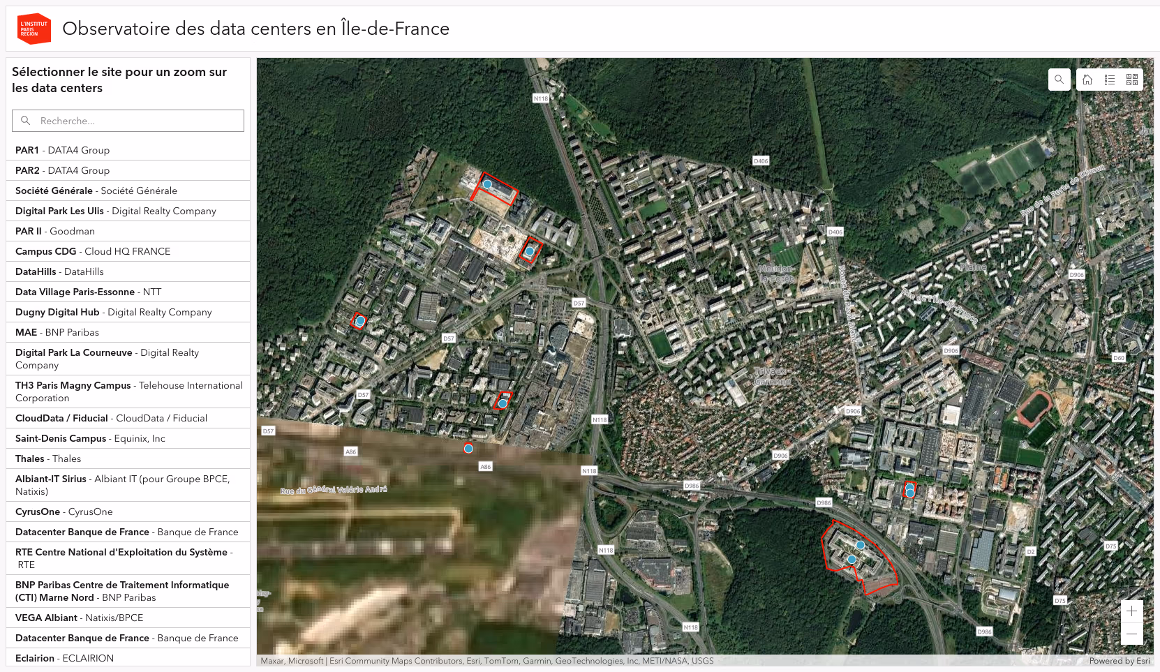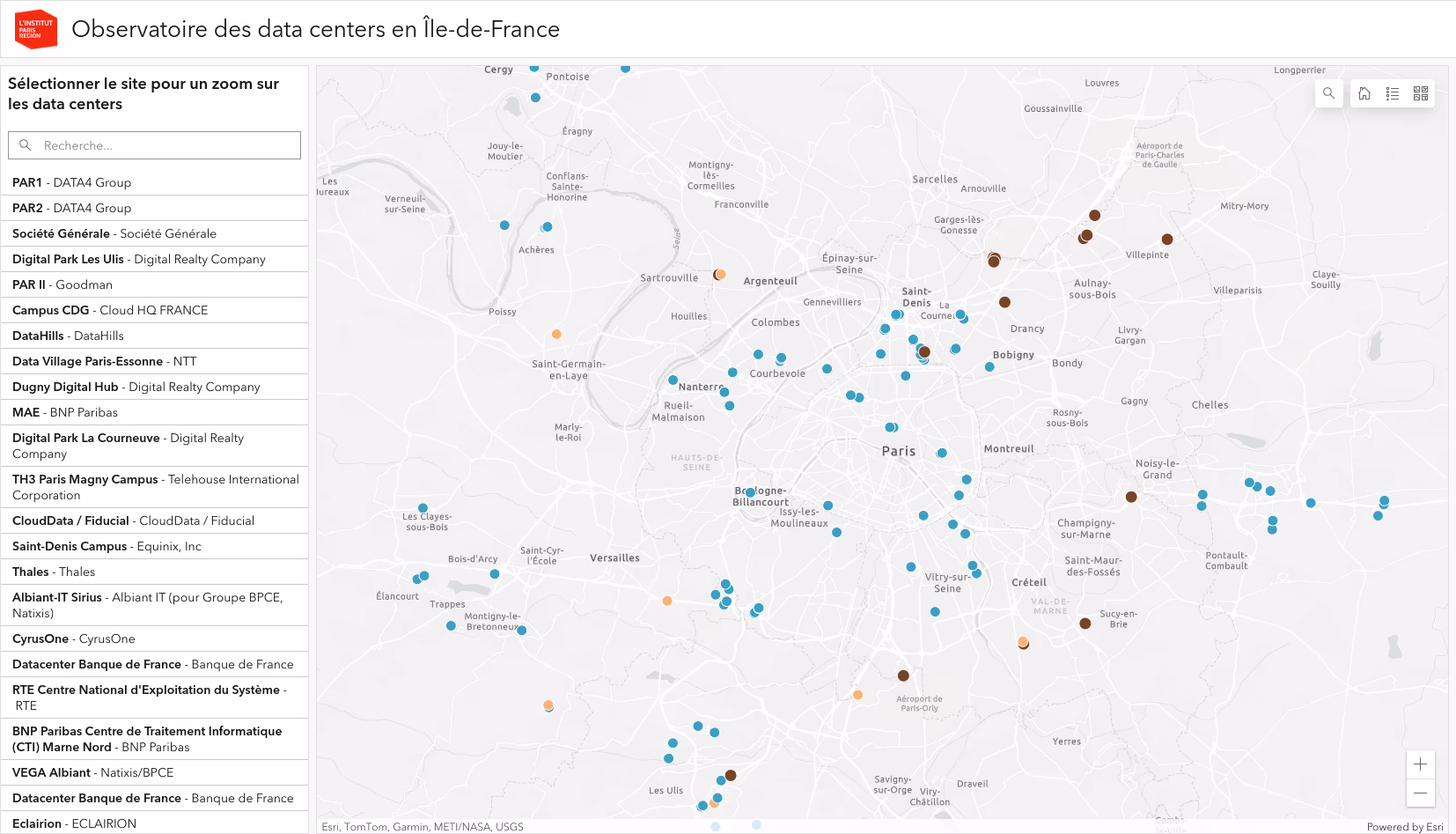 Le lien est HS, mais je pense que cette carte des Datacenter en Île-de-France la remplace : https://geoweb.iau-idf.fr/portal/apps/dashboards/8e2a38a5643947fdac330b3f87a7edb9