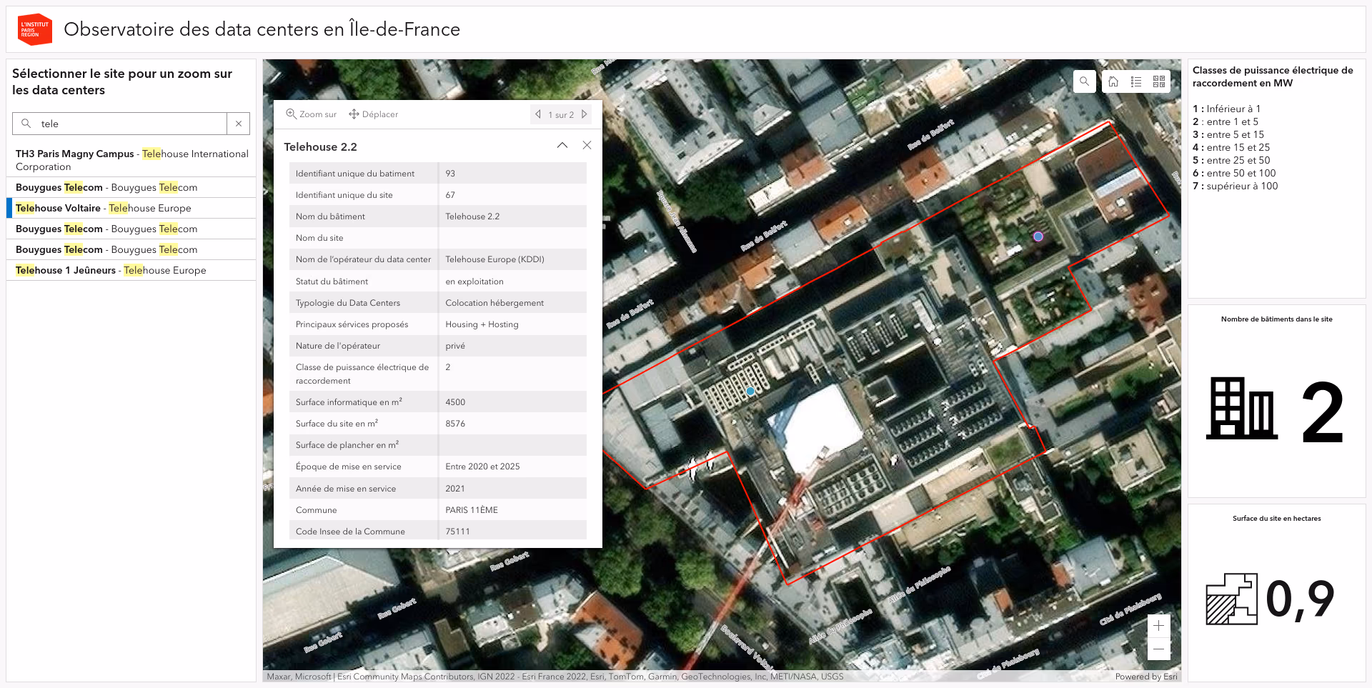 Il est possible d'avoir de nombreux détails sur un datacenter, sa puissance, son exploitant, sa date de construction,...