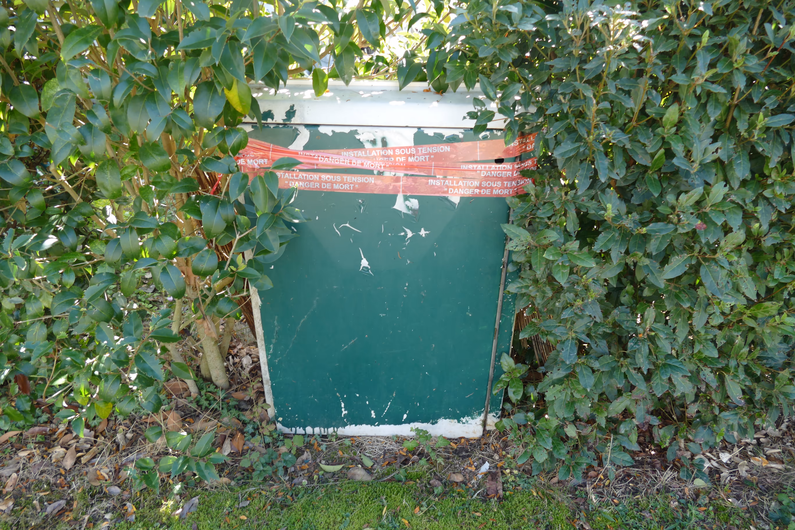 Voici l'état actuel du coffret Enedis datant de 1993 et situé contre un transformateur d'un lycée :