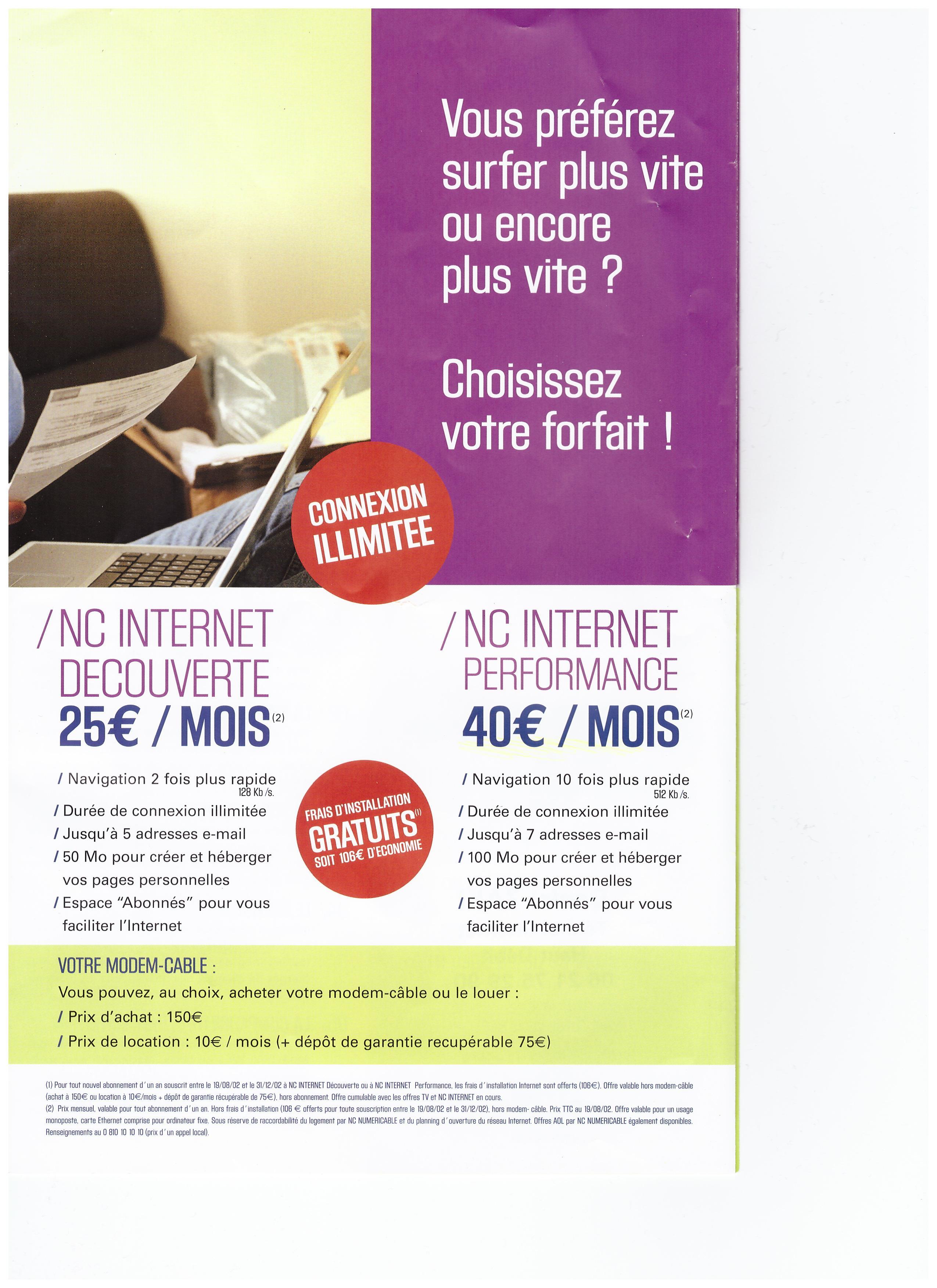 Qui le premier a proposé une offre Internet, sans nécessité de payer un abonnement téléphonique à Orange, à moins de 20€/mois ? Numericable (pour du 100 Mb/s en plus)