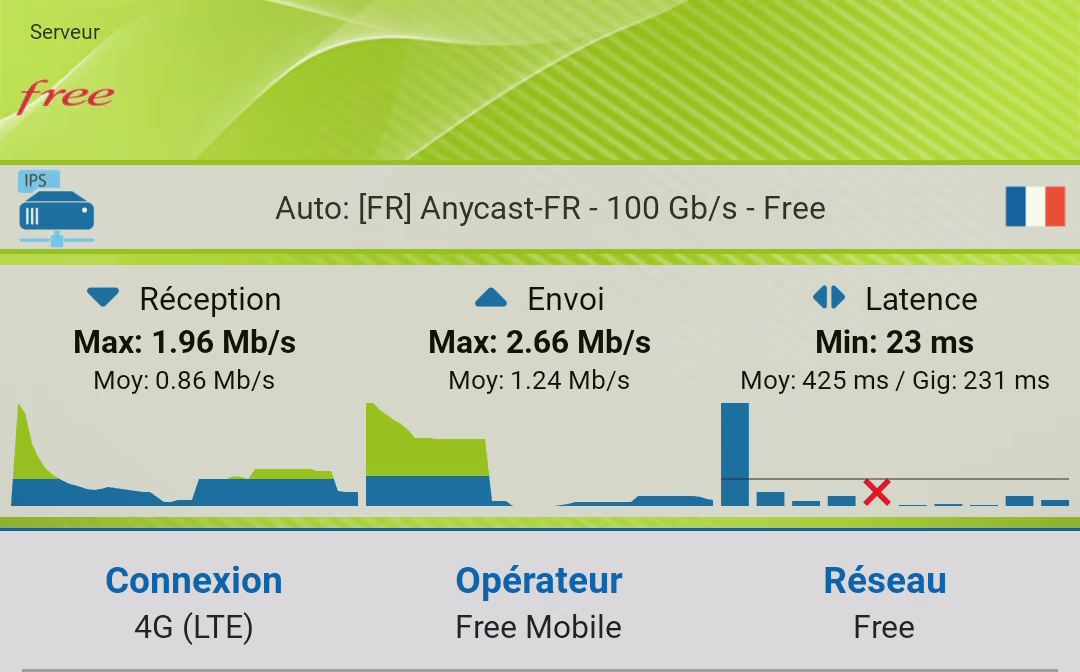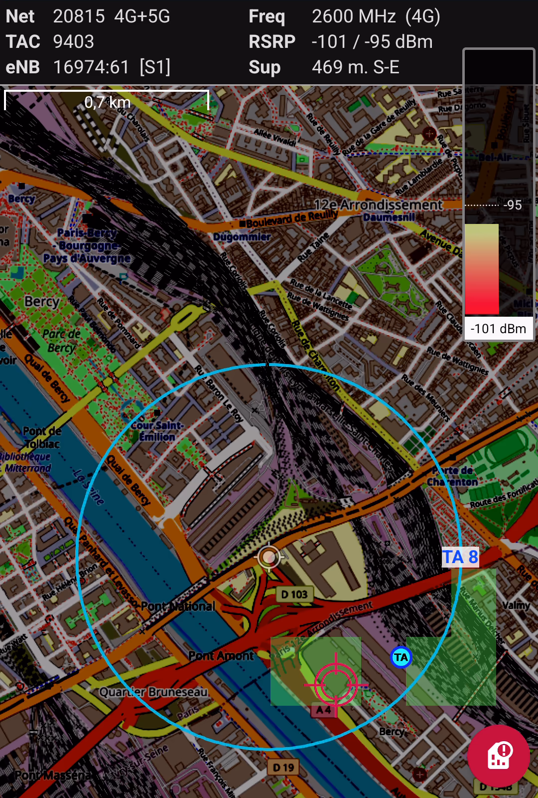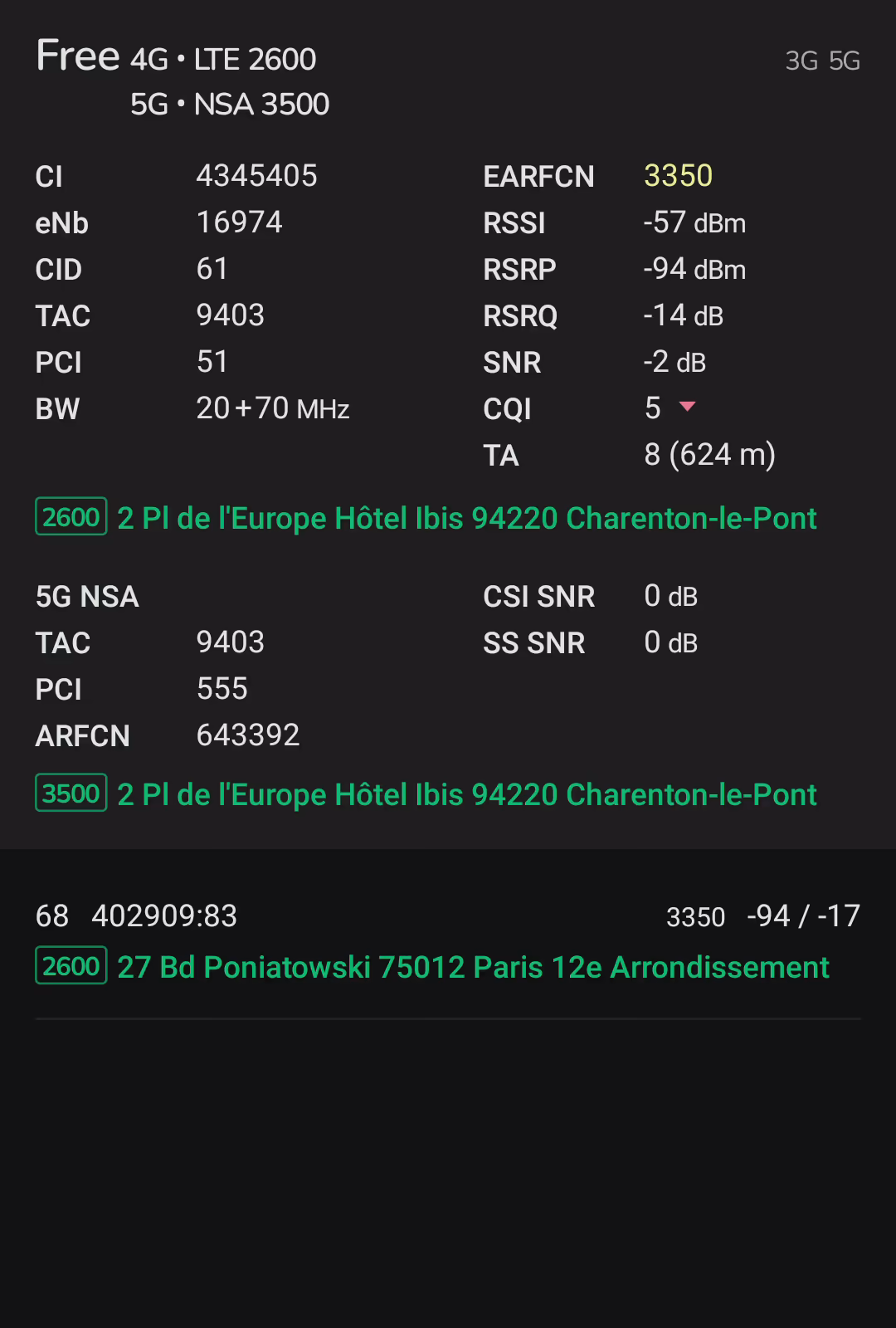 Exemple : Sur la copie d'écran ci-dessous, selon enB Analytics je me suis accroché sur un site à 3,3 Km au nord de ma position. Je ne vais pas rester longtemps dessus, mais il n'arrive pas à se stabiliser, même en étant fixe, il continue de changer continuellement de site.