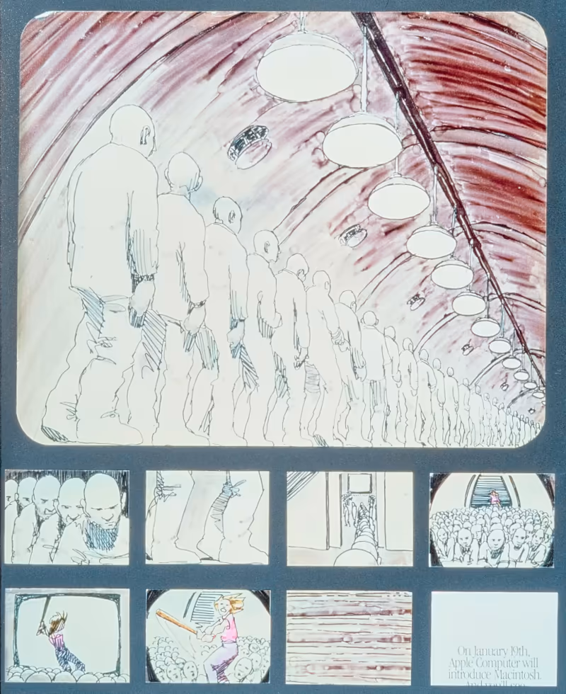 Storyboards du spot publicitaire « 1984 » pour le lancement du Macintosh :