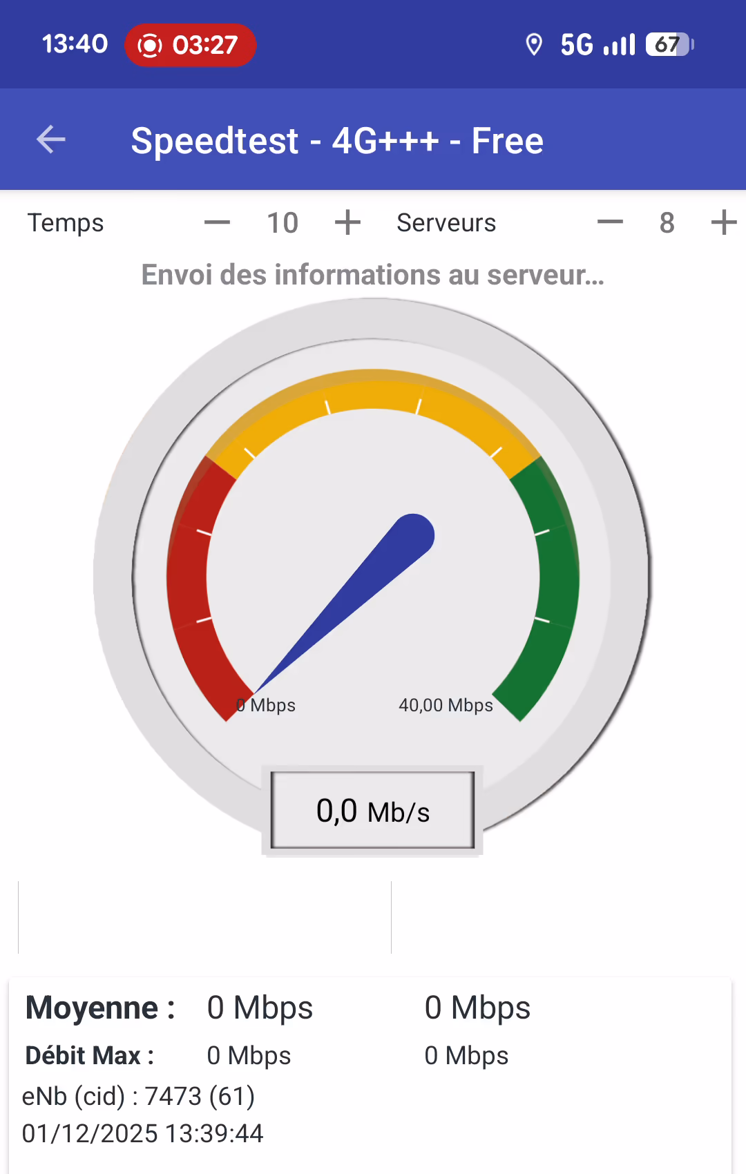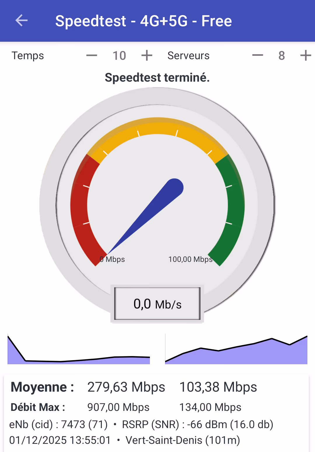 Malgré toutes les fréquences accrochées, le débit est médiocre, c'est probablement lié au fait qu'on n'est pas accroché sur le bon secteur : (test de débit lancé à 1min 24 seconde de la vidéo)