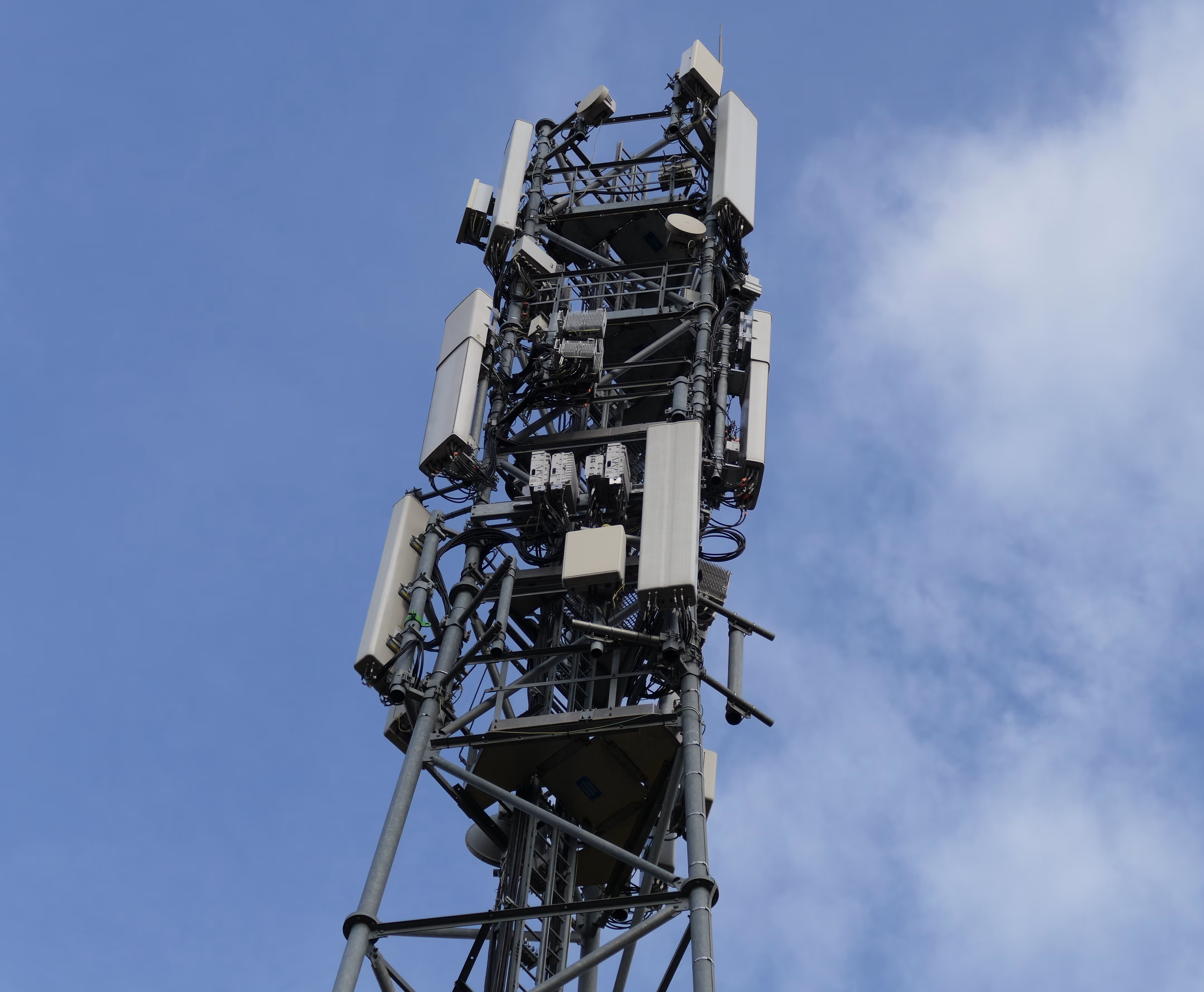 Voici l'antenne photographiée en m'approchant du pylône : (de haut en bas : Bouygues Telecom, Orange et Free)