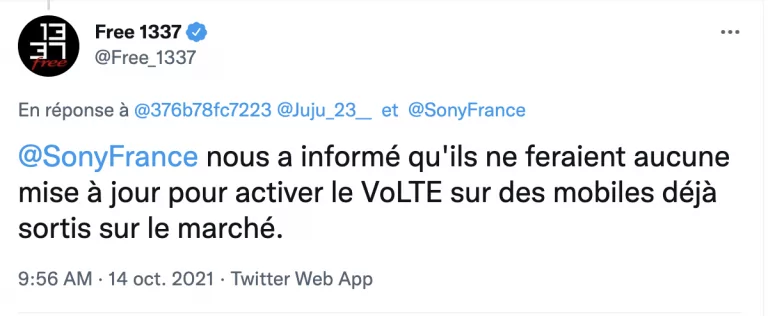 Free a déjà précisé plusieurs fois sur twitter il y a quelques années, le refus catégorique et clair des fabricants samsung et sony, d'intégrer les profils volte de free sur leurs appareils actuels et anciens (2022 et avant). Ce choix est de la reseponsabilité du fabricant de téléphone, qui est clairement fautif.