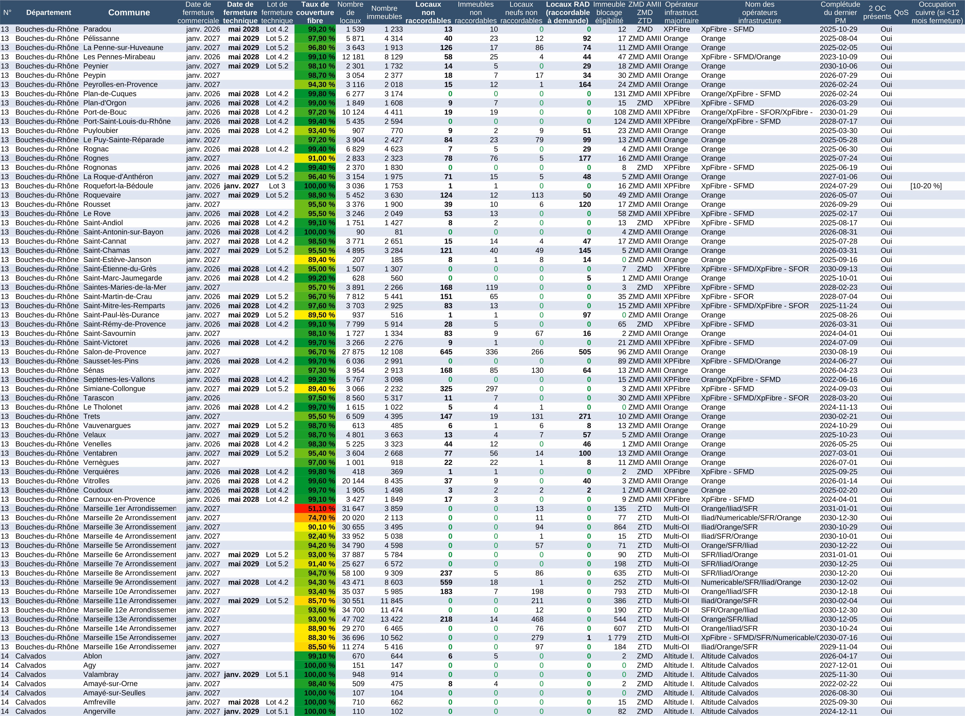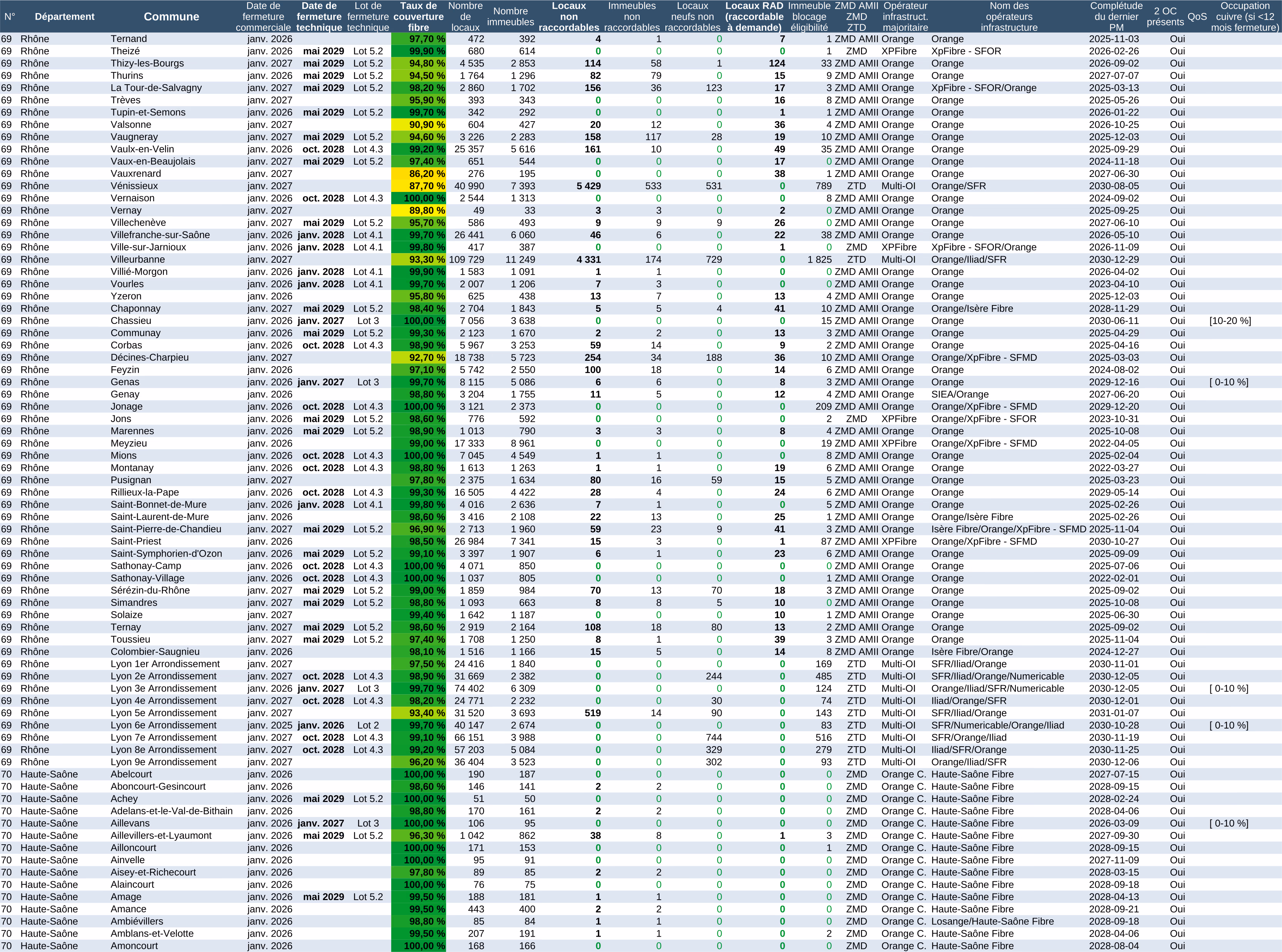 Pour la fermeture cuivre, une case blanche, c'est l'absence de fermeture cuivre pour le moment (ce sont les communes des lots 6 et 7, avec une fermeture du cuivre en 2030 et probablement 2031).