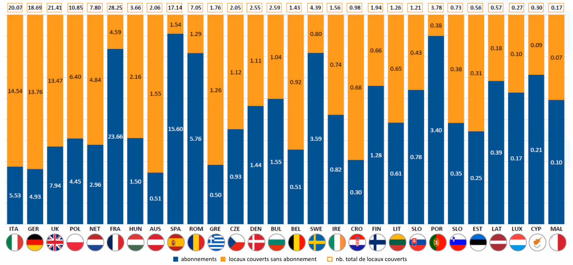 S’agissant du taux d’abonnements à des débits supérieurs à 1 Gbit/s, la France est loin devant ses partenaires européens avec un taux d’adoption par les consommateurs trois fois plus élevé que la moyenne des pays de l’Union européenne.