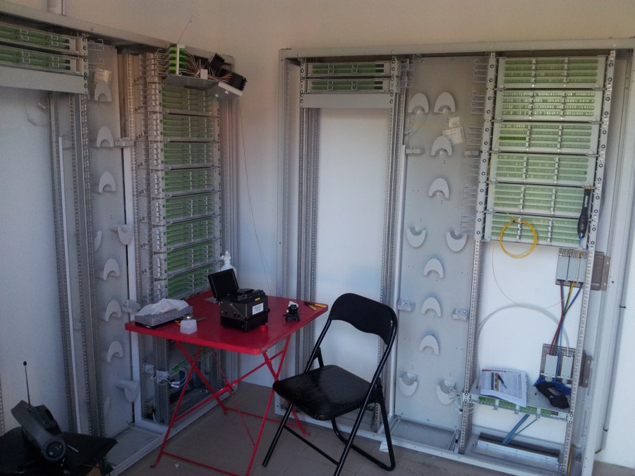 L'intérieur du NRO coté FAI :La grille sépare la partie Sem@for77 de la partie FAI :