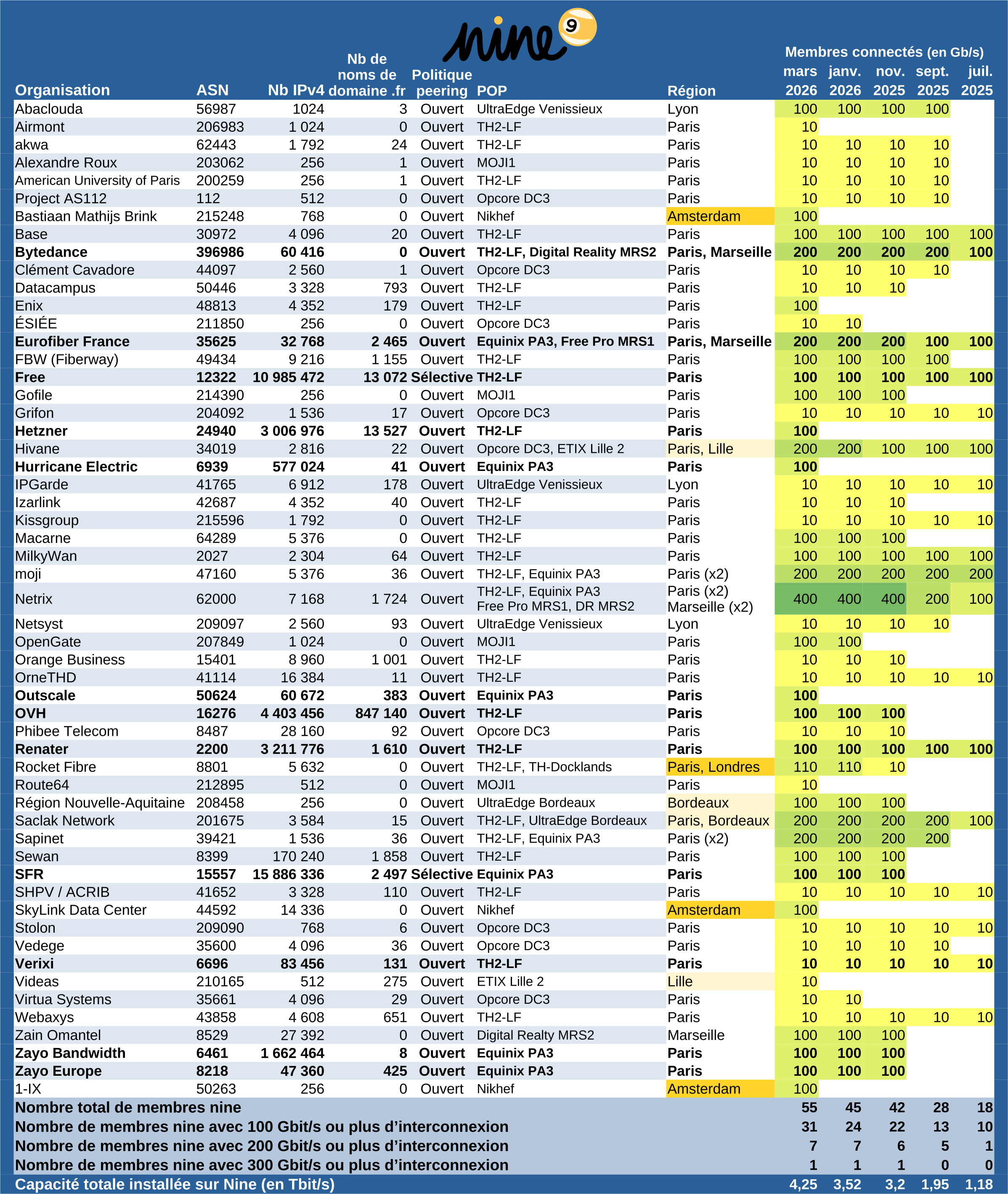 Mise à jour : En deux mois Nine a eu 10 nouveaux membres, dont plusieurs acteurs de premier plan (le grand hébergeur Hetzner, le Tiers 1 Hurricane Electric, OutScale)