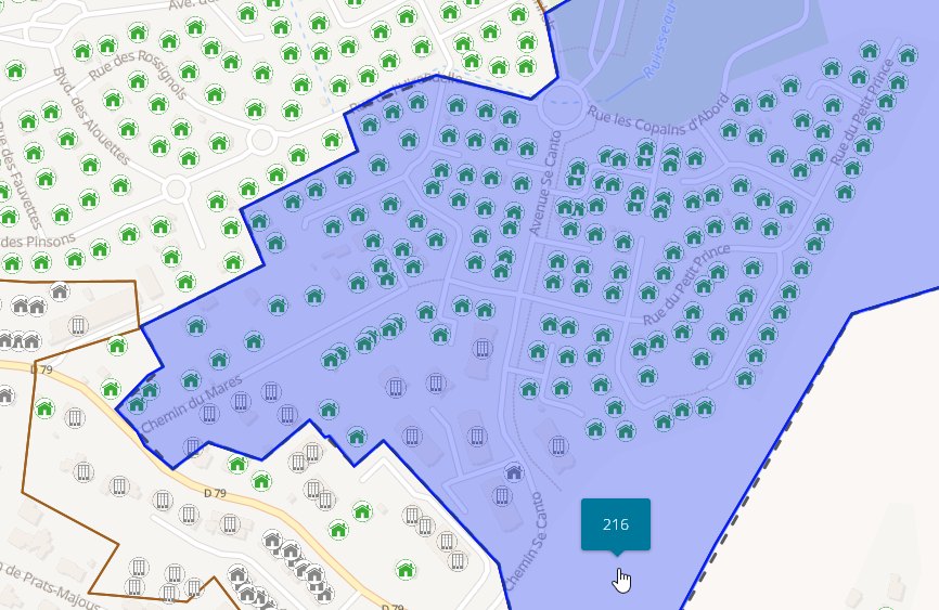 Même les points de couleur affichés sur le(s) plan(s) sont incorrects : des logements "de chez nous" apparaissent en vert alors qu'en réalité ils ne sont pas raccordés ni raccordables.