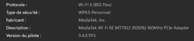 En effet j'ai l'impression qu'on est sur une version publié 26 juin 2023 et je retrouve une version au 15 novembre 2024 pour MediaTek Wi-Fi 6E MT7922 (RZ616) 160 MHz