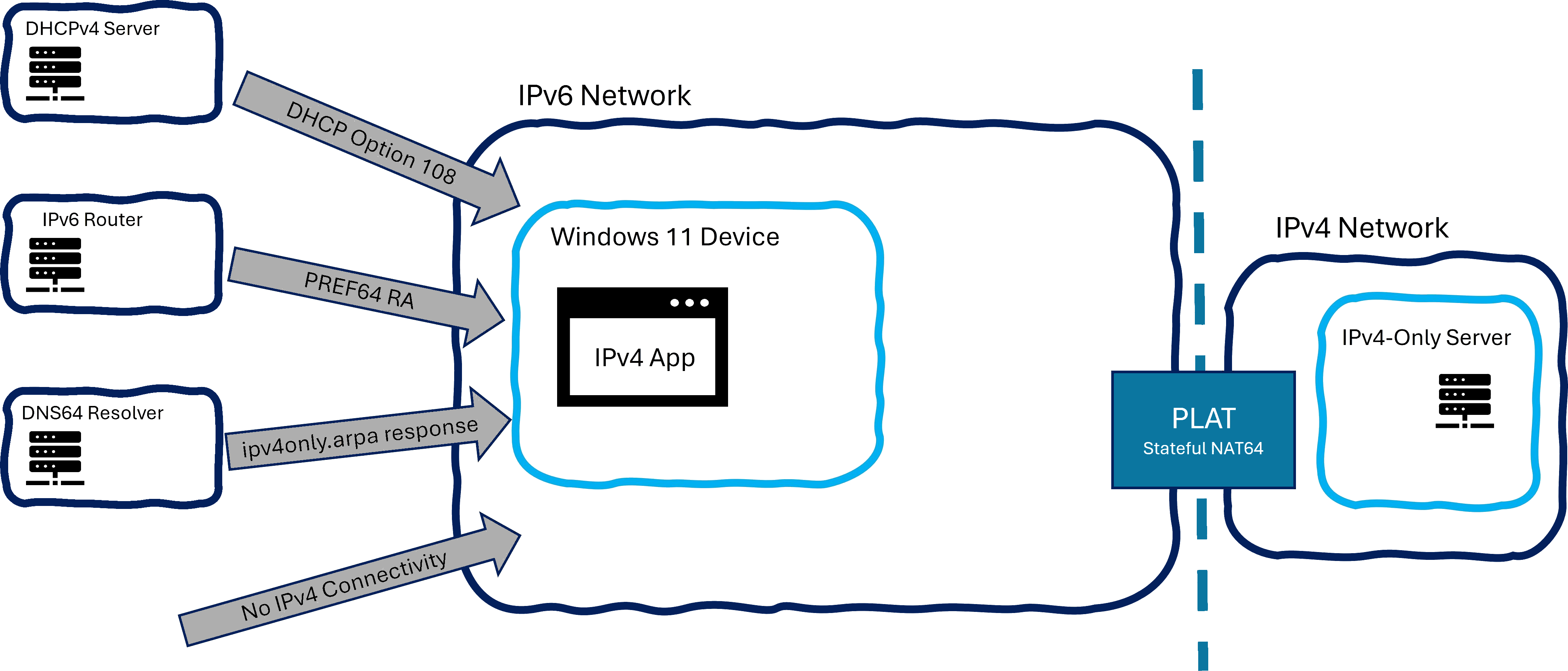 La plateforme NAT64 de l’opérateur peut attribuer une adresse IPv4 source différente aux flux provenant de deux IPv6 source distinctes, même si les deux IPv6 sont dans le même /64. Il en résulte que l’IPv4 publique affichée pour une requête vers un site IPv4 only joint via DNS64 peut être différente de celle utilisée pour joindre le même site depuis le même mobile, mais via une IPv4 littérale.