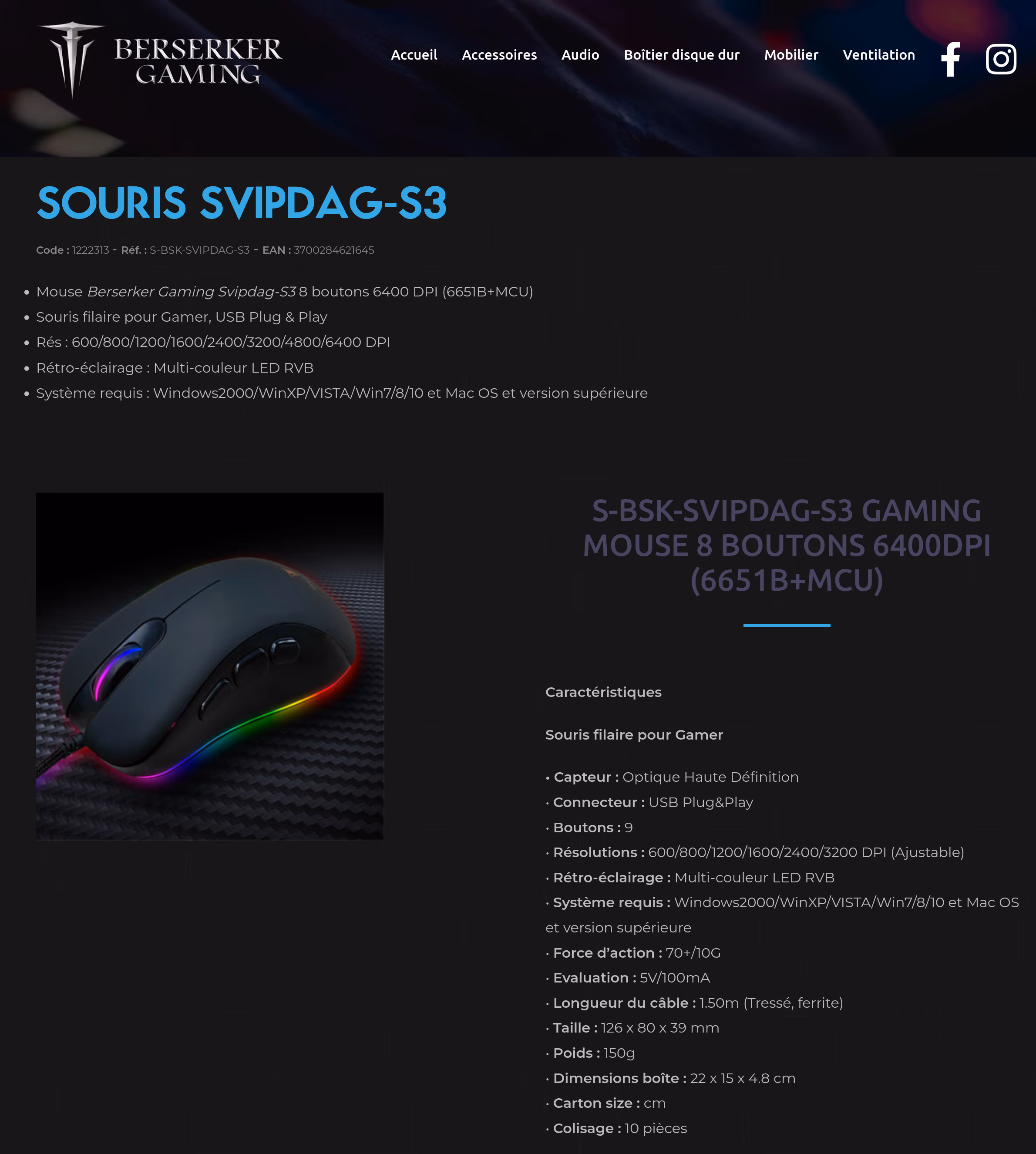 J'ai acheté à la Fnac un souris gaming Berserker Gaming pour mon fils (LED RGB qui changent de couleur autour de la souris, boutons programmables) en promotion à 9,90 € (au passage la même souris est vendue à 24,67€ sur Amazon).
