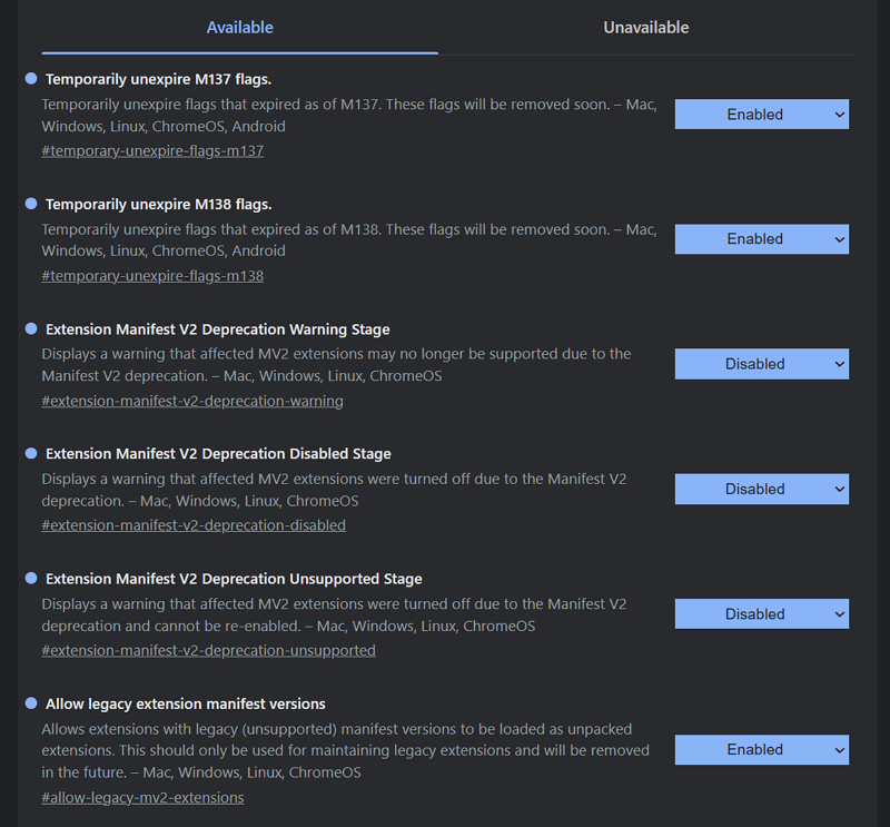 --disable-features=ExtensionManifestV2Unsupported,ExtensionManifestV2Disabled