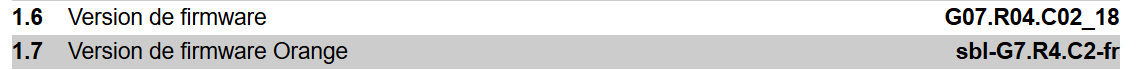 - Firmware actuel : G07.R03.C01_20 (fw Orange = sbl-G7.R3.C1-fr)