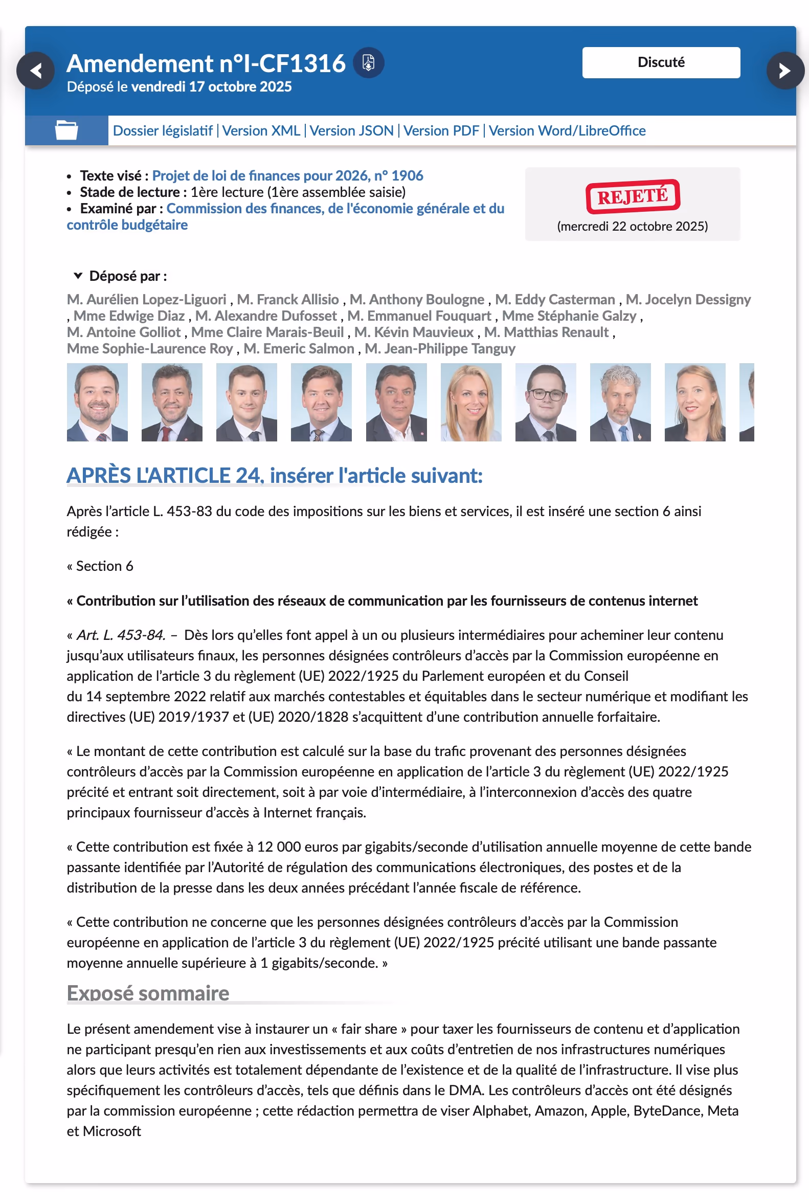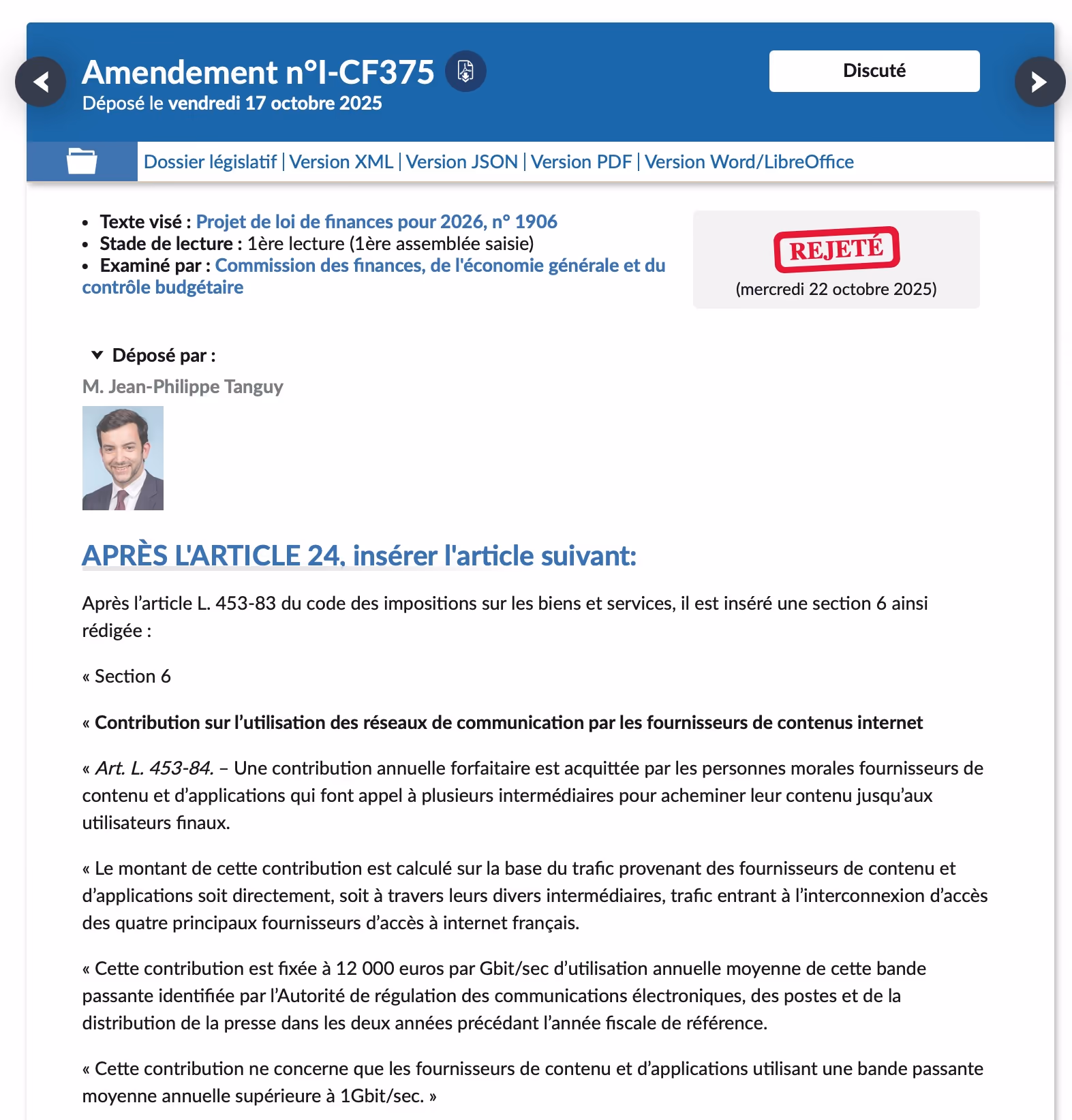 Auteur Sujet: PLF 2026 : le retour de la taxe peering  (Lu 3176 fois)