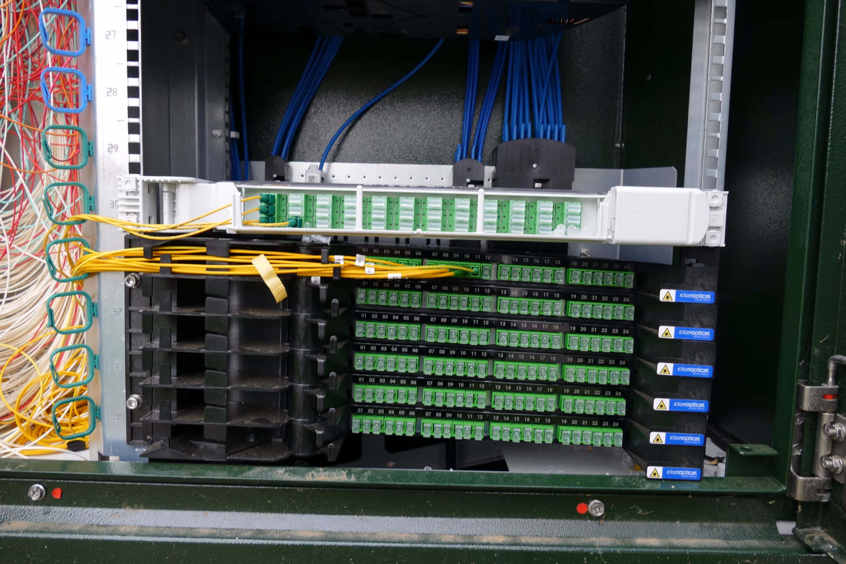 À droite, on retrouve les fibres qui arrivent de l’extérieur : Les 3/4 de l’espace en haut sont pour les fibres qui viennent des maisons.