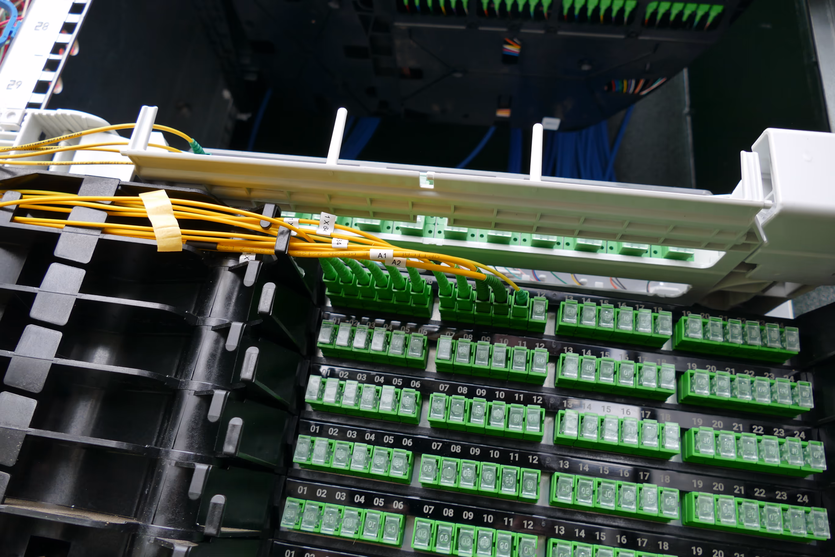 Les fibres pour relier la baie avec l'OLT le panneau de brassage est déjà présente :