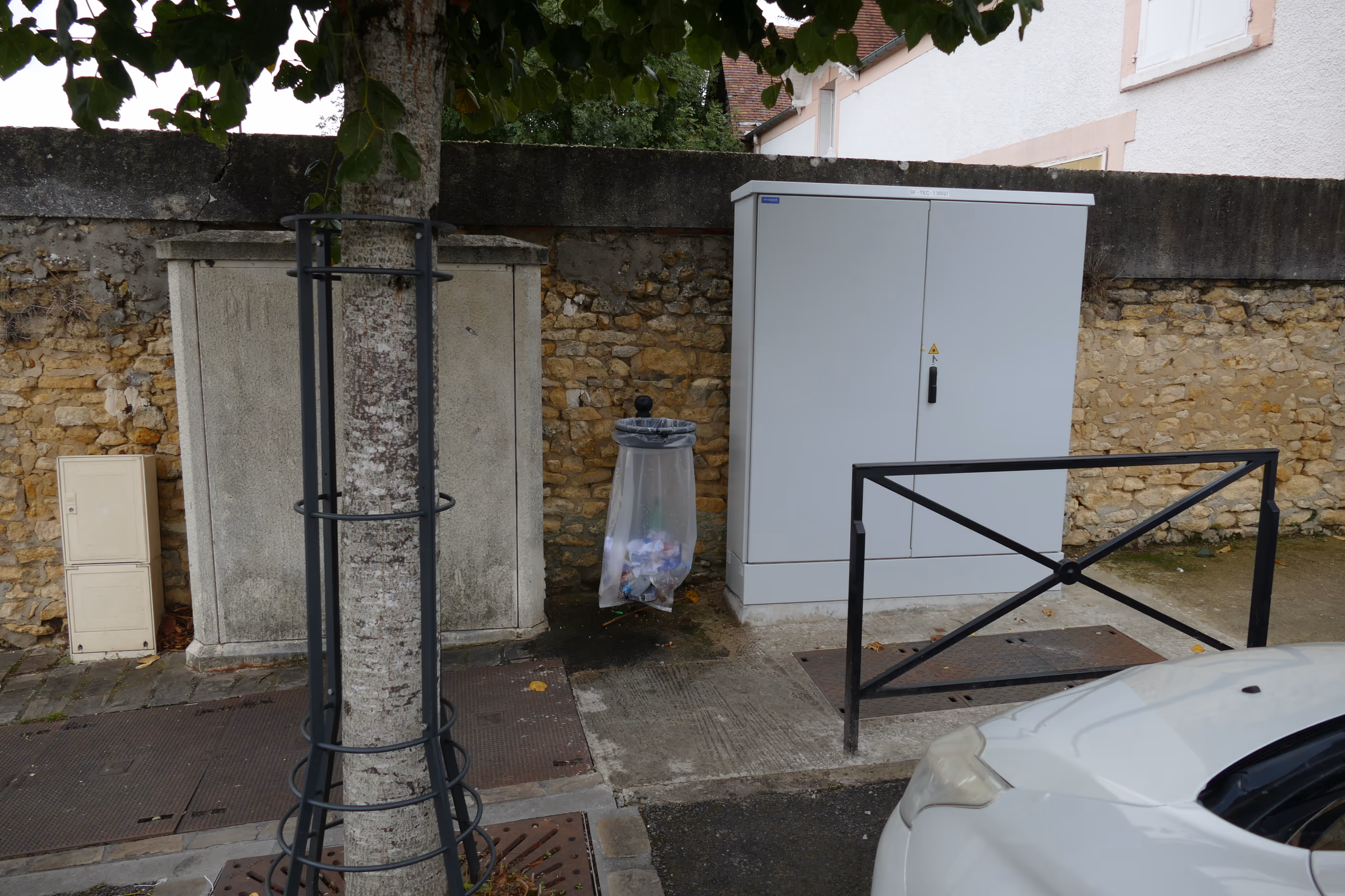 On apprécie la poubelle qui est juste à côté de l'armoire.