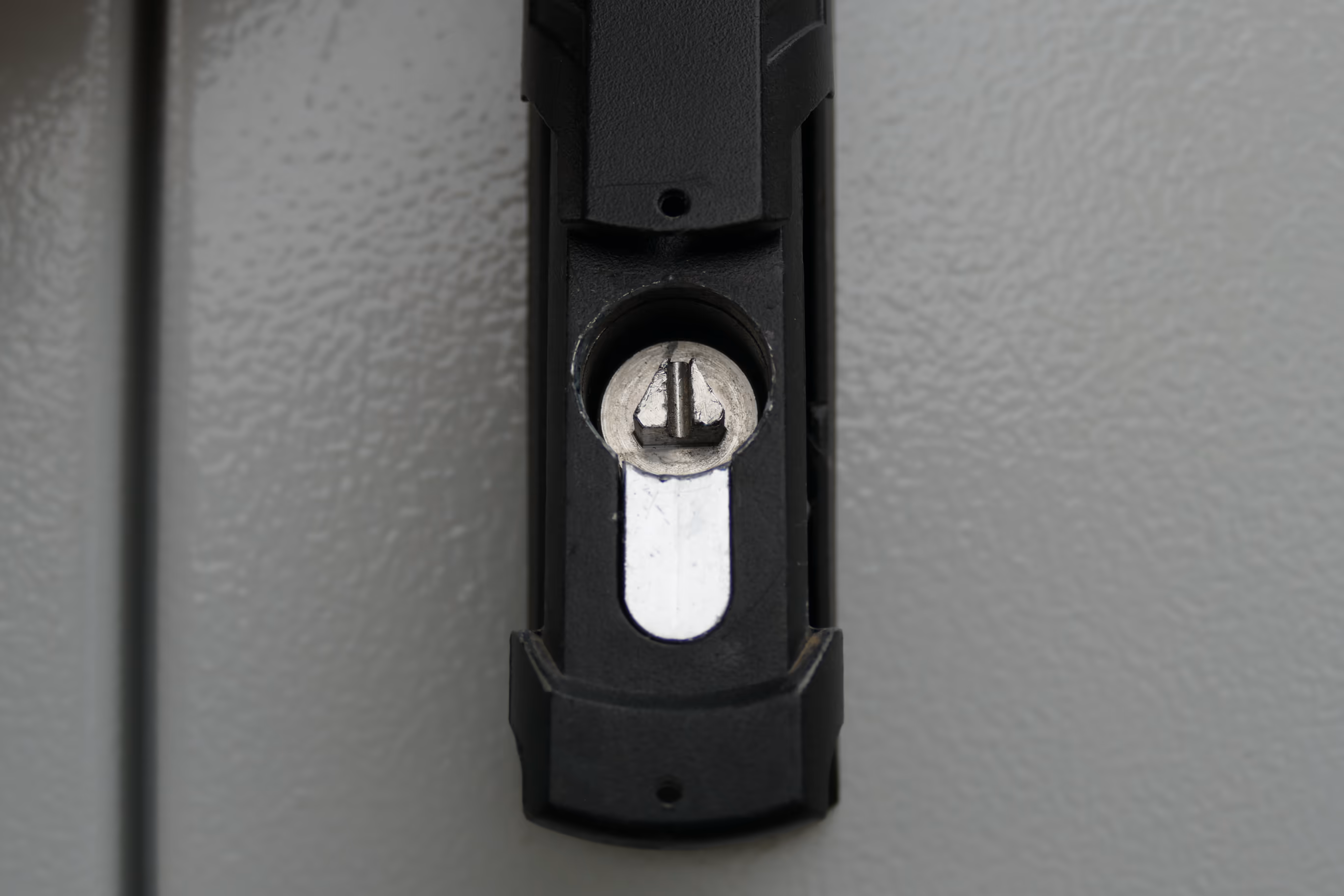Un autre différence des PM Idea Optical face à Grolleau, c'est la possibilité d'ouvrir l'armoire avec un simple tournevis, là où la serrure mise en place par XpFibre sur les Grolleau nécessite une clé triangle.