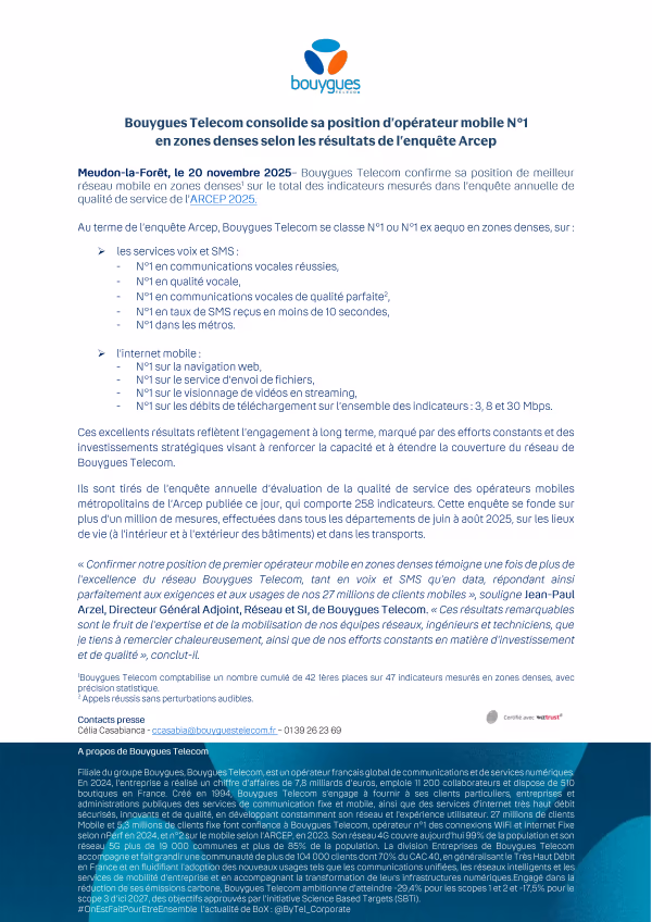 Bouygues Telecom n'a encore rien publié, c'est étonnant.Pourtant, il n'est pas mal placé sur de nombreux indicateurs.