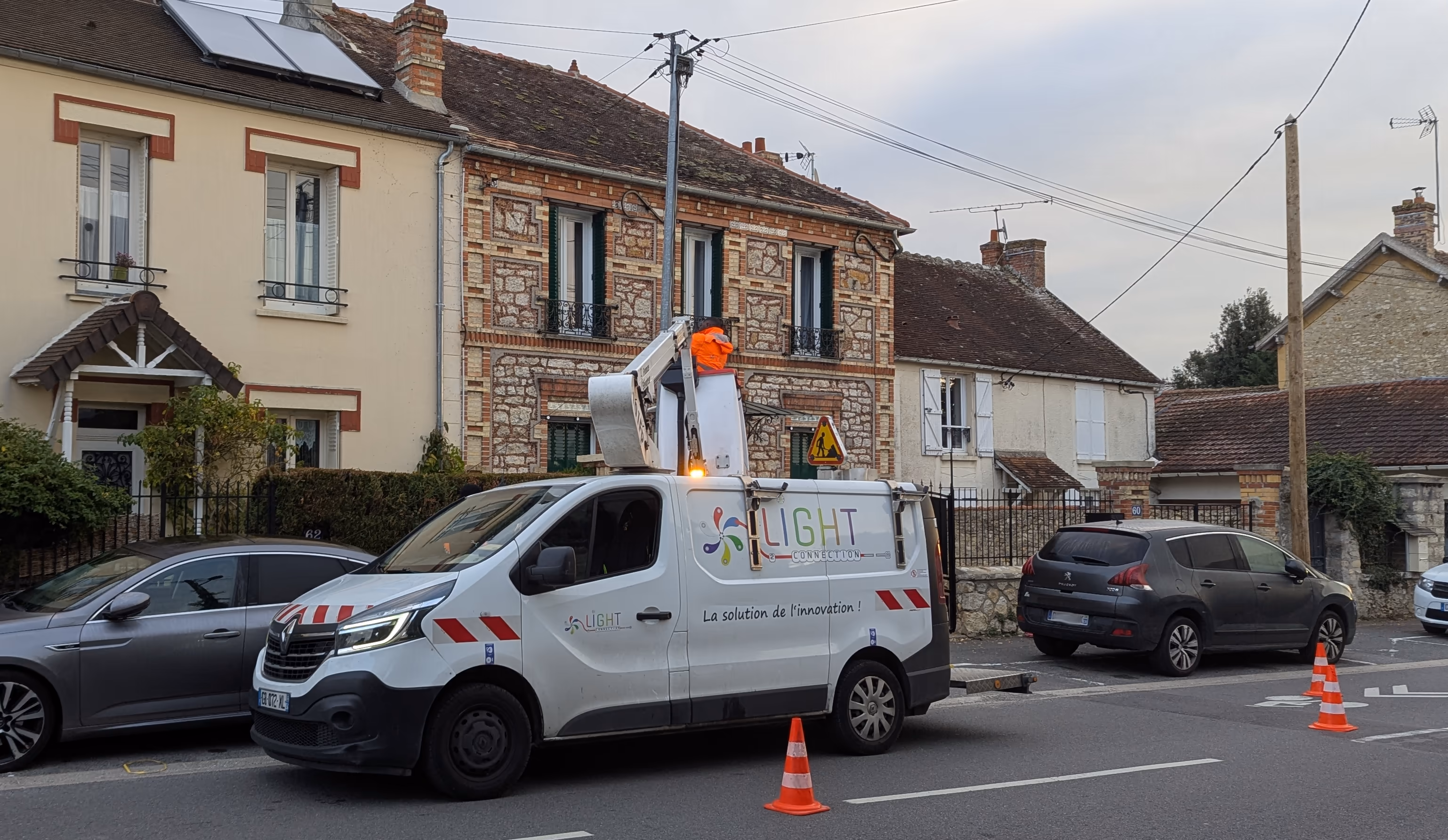 Dans le cadre de l'extinction du cuivre, Orange a envoyé deux techniciens pour le raccordement fibre : un technicien sous-traitant d'Orange et un technicien de Light Connection, une entreprise spécialisée dans le raccordement difficile fibre optique.