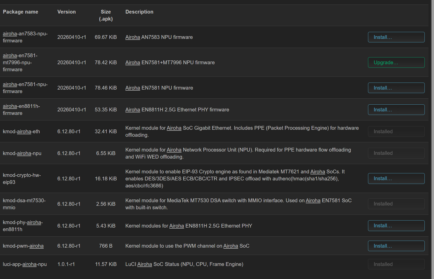 Je pense que c'est possible d'avoir les même fonctionnalités que dans les firmware custom à travers un firmware officiel en installant les packages pour le w1700k/cpu airoha :