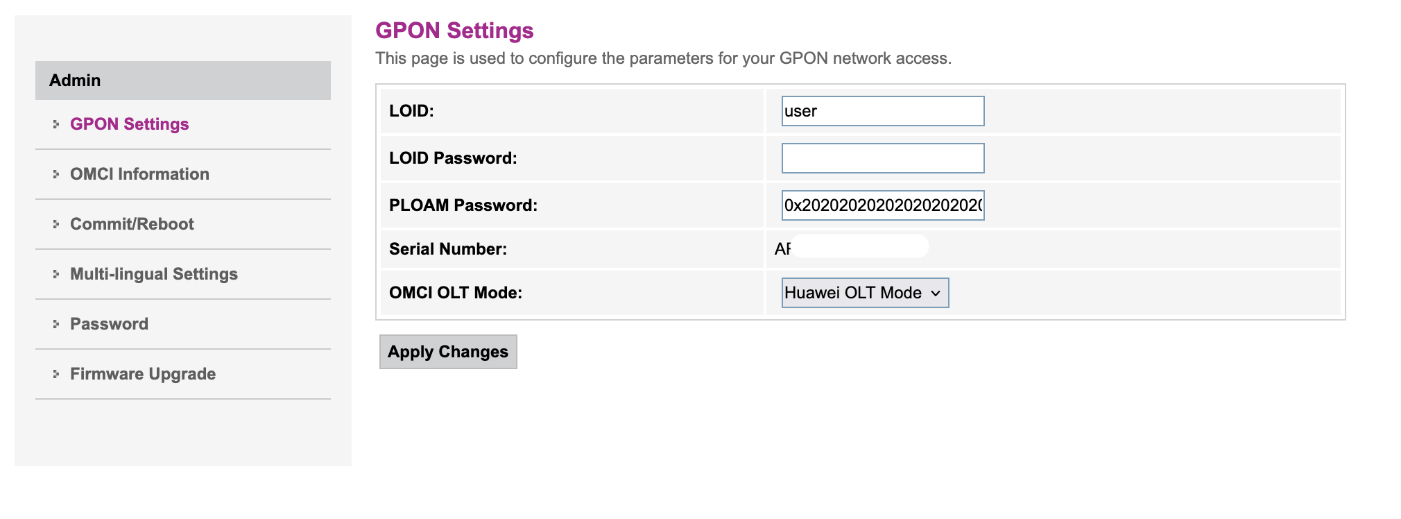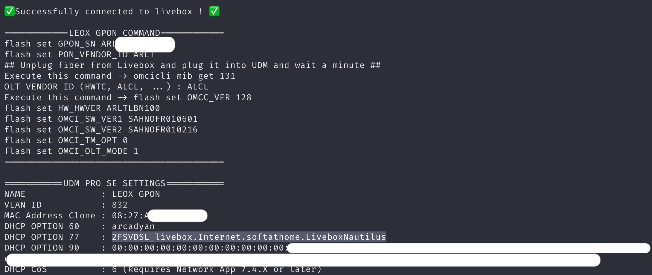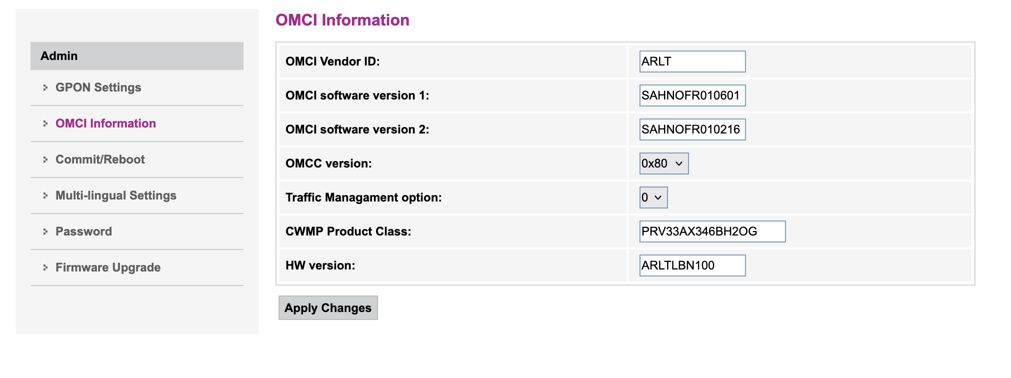 Pour le CWMP Produc Class j'ai utilisé le 9.10 du menu ONT de la LB.