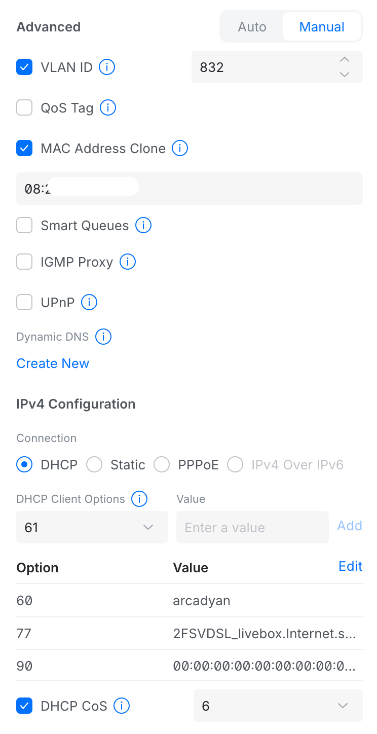J'ai configuré le WAN sur l'UCG comme indiqué