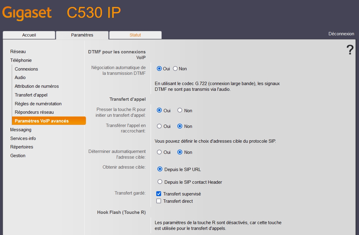 Salut,Perso je récupère bien les identifiants depuis une VM Windows Server mais j'ai un problème de configuration du C530IP.En effet, j'arrive bien à passer des appels mais je n'arrive pas à en recevoir.J'ai fait une règle NAT dans mon OpenWRT avec les ports que tu as indiqué à la page précédente mais rien ne change Je continue mes investigations.