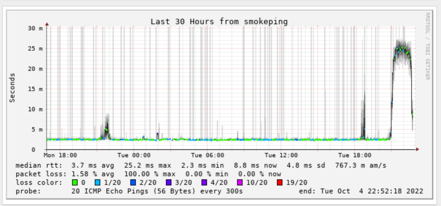 22h petite dégradation du ping (sans conséquence sur le débit)