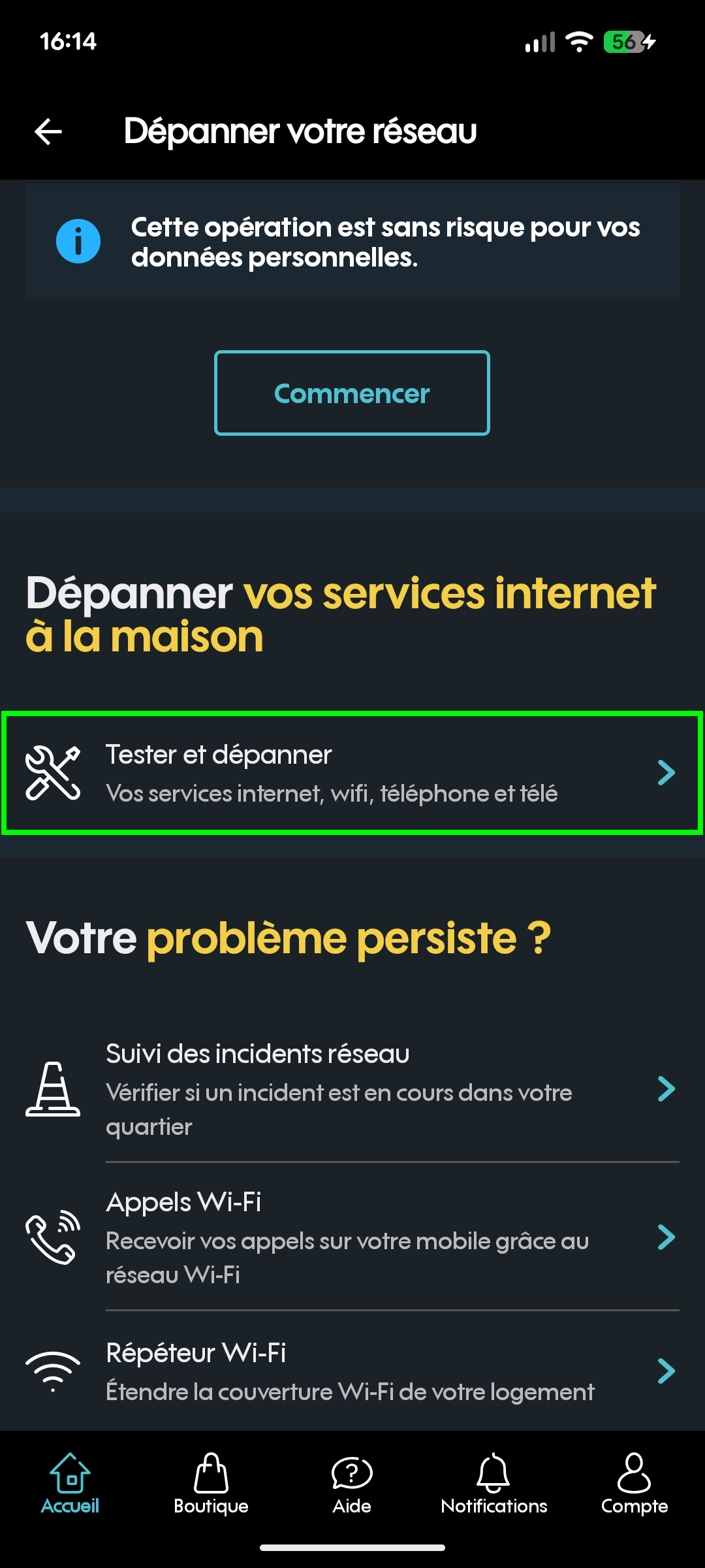 Il va réaliser un diagnostic de la ligne et peut vous amener à Djingo, l'assistant virtuel d'Orange pour vous aider.