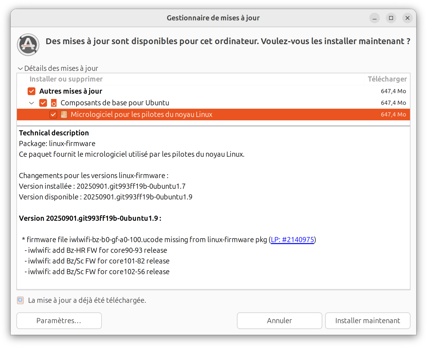 Seconde mise à jour du moi pour Ubuntu 25.10 : (noyeau Linux 6.17)