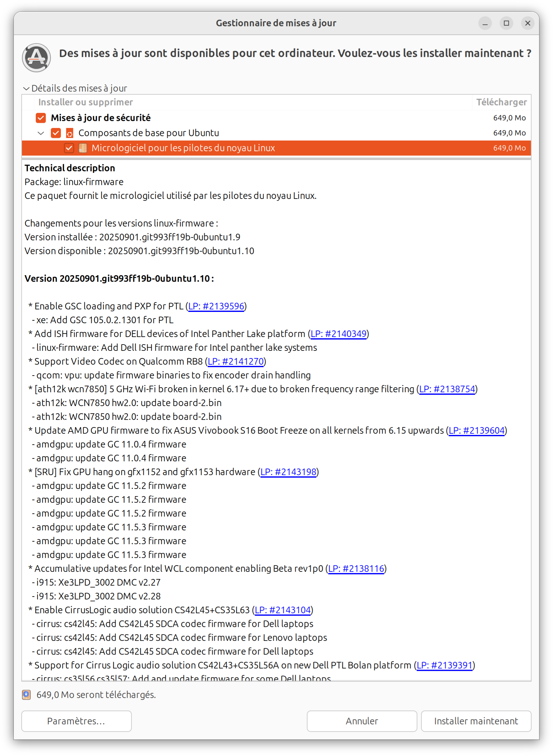 Toutefois le paquet firmware semble identique sur une Ubuntu 24.04 avec le noyau 6.17 ou le noyau 6.8.