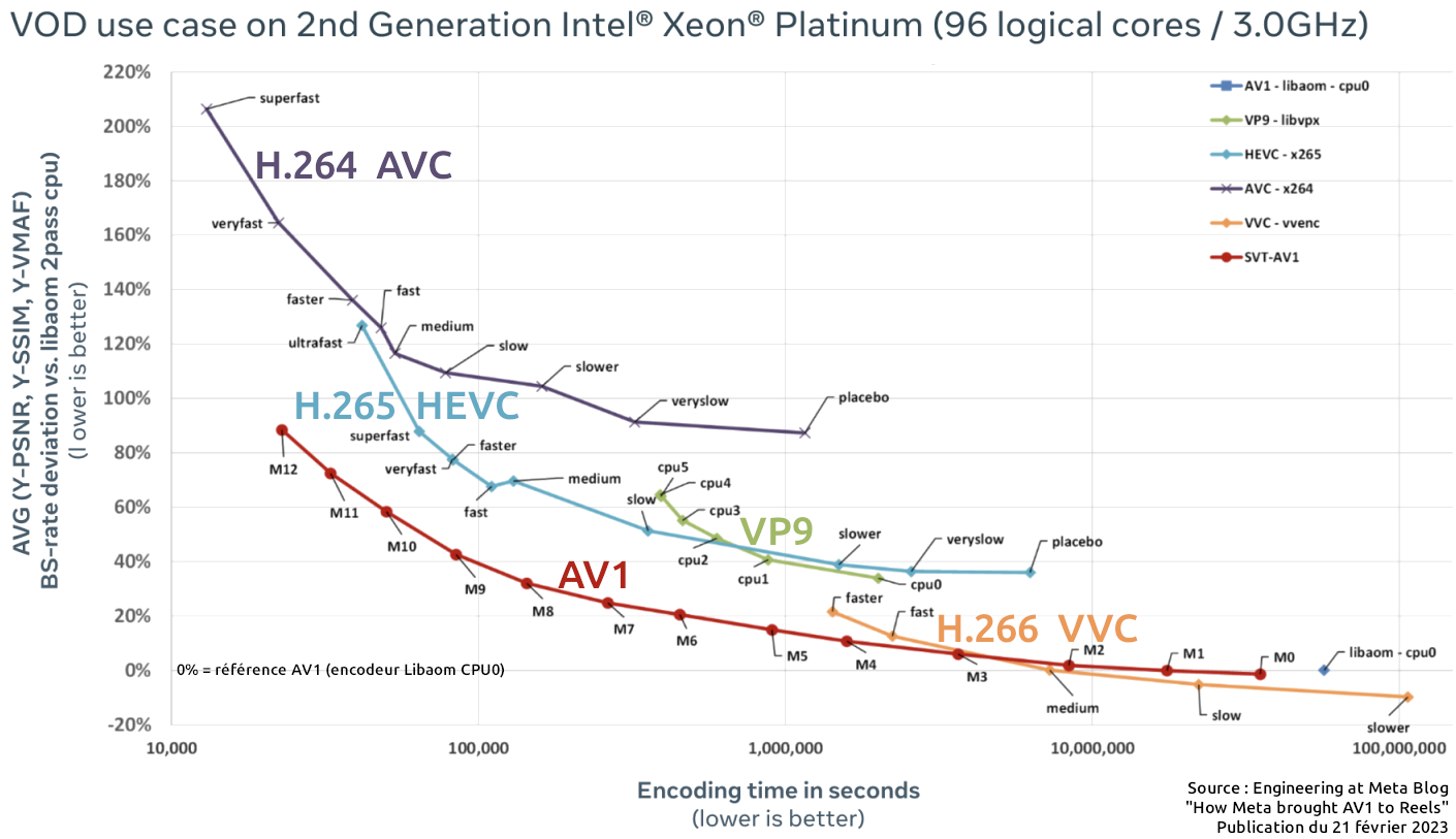 La ligne de commande utilisée. Je suis en "-preset 3" donc un encodage relativement lent.