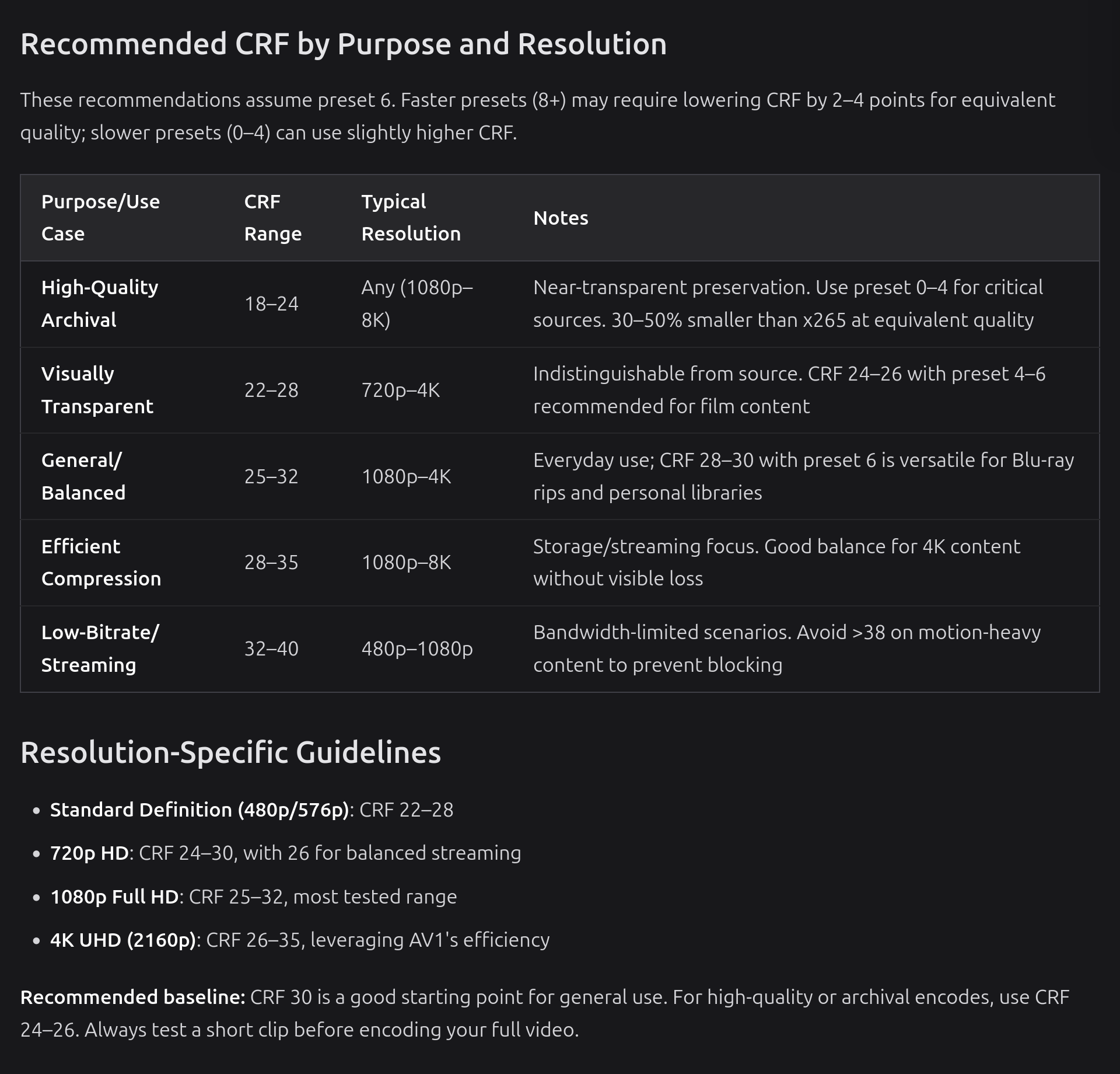 Quelle qualité de compression utilisez-vous avec le codec AV1 ?Le CRF (Constant Rate Factor) ajuste la compression selon la complexité des scènes. Les valeurs s'étendent de 0 (compression sans perte) à 70 (très fortement dégradée).