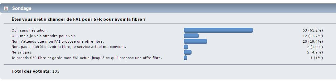 J'ai mis un nouveau sondage...Il est question de voir si SFR satisfait les herblaysiens et si nous ne devrions pas envisager d'engager la procédure, comme cela a été fait ailleurs, pour qu'Orange reprenne le déploiement...